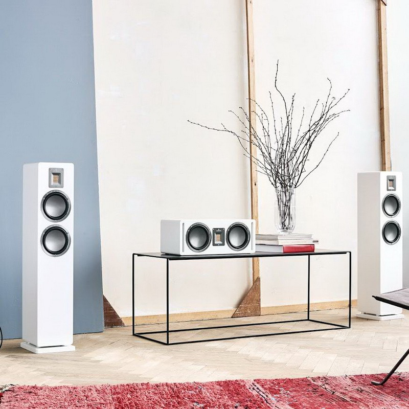 Цельный кусок авиационного алюминия был использован при изготовлении накладки фронтальной панели колонок. Её цвет – Tungsten Titanium Grey. Ленточный твитер отличается наличием позолоченной накладки, на которую возложены фильтрующие функции по технологии S-Stop. Данный фильтр, который был внедрён в процессе производства модели – аналог популярных POP-фильтров из отрасли аудиозаписи. Функция рассеивающей решётки, расположенной перед пищалкой – фильтрующий контроль сибилянтов. Показатели чувствительности и сопротивления – 87 Дб и 4-8 Ом соответственно.