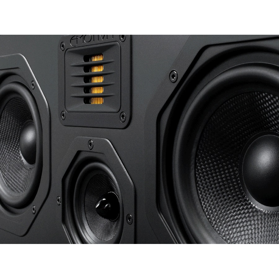 Emotiva Airmotiv C1 трехполосная акустическая система центрального канала. Феноменальное качество звука и отличные характеристики сами по себе не являются признаками великолепной акустики. Вот почему мы добавили в нашу новую серию пассивной акустики Airmotiv целый ряд других возможностей. Передняя косметическая панель покрыта несколькими слоями черного лака с сатинированной отделкой, что выглядит весьма элегантно и привлекательно. Ее поверхность нечувствительна к отпечаткам пальцев и мелким царапинам. А боковые и задняя панели обработаны твердым структурированным слоем черного винила.