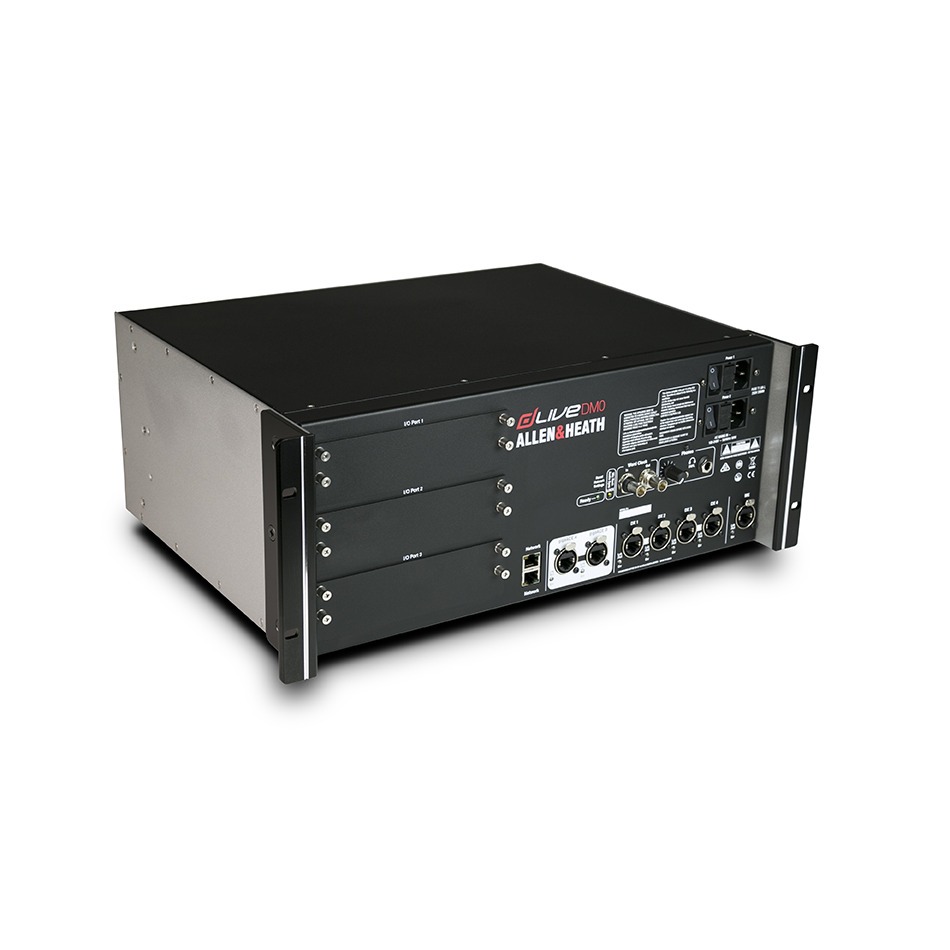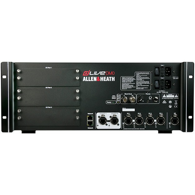i/O порт – этот слот позволяет использовать дополнительные карты расширения (до 128 каналов), работающие на разных системах - A&HACE, MADI, Dante, ES, Waves, MMO, По этому, dLive DM0 MixRack можно использовать как самостоятельный студийный интерфейс для записи звука в студиях, на TV производстве и т.д. Наличие 3-х портов позволяет использовать разные интерфейсы ввода/вывода.