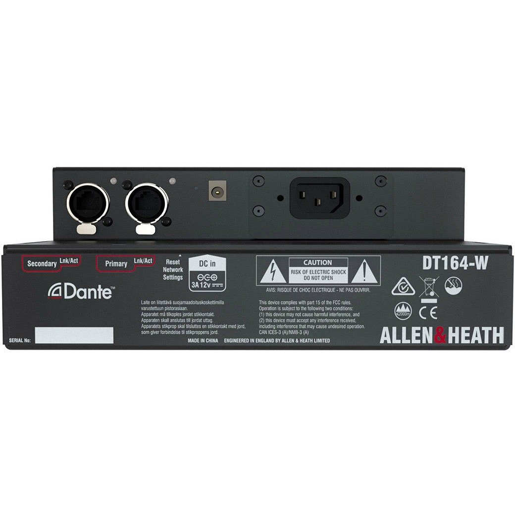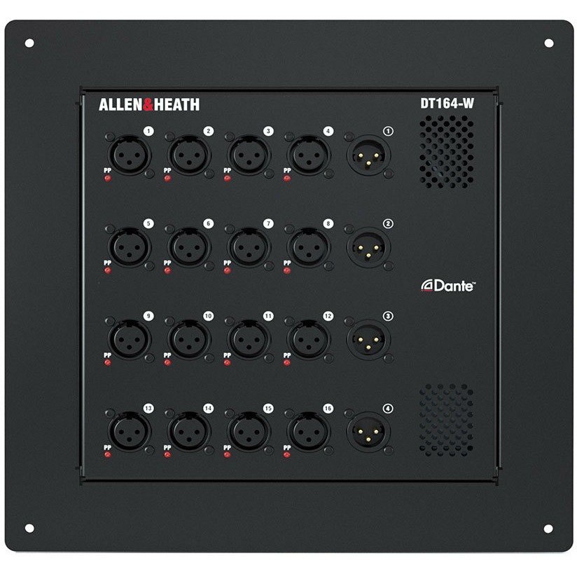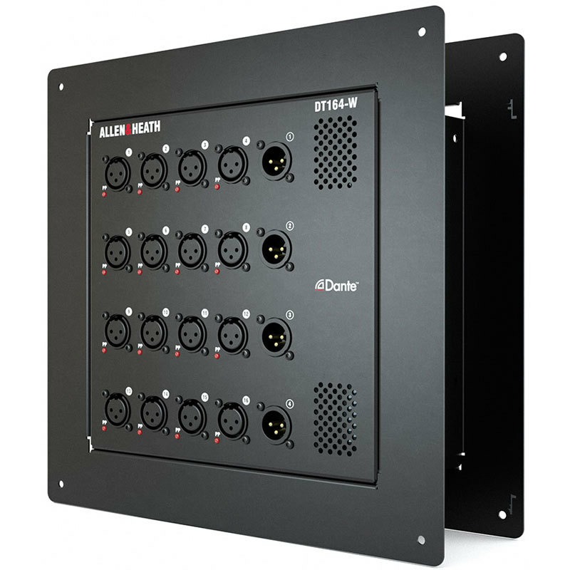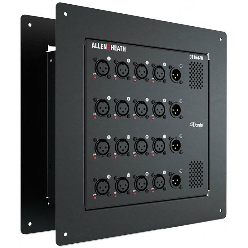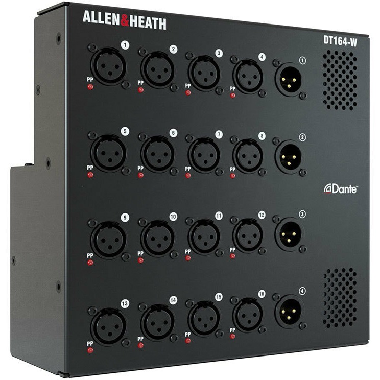 Allen & Heath DLIVE-DT164-W - настенный модуль дополнительных входов-выходов для систем dLive или SQ. DX164-W имеет 16 микрофонных предусилителей с независимыми светодиодными индикаторами Phantom Power, а также 4 линейных выхода XLR.