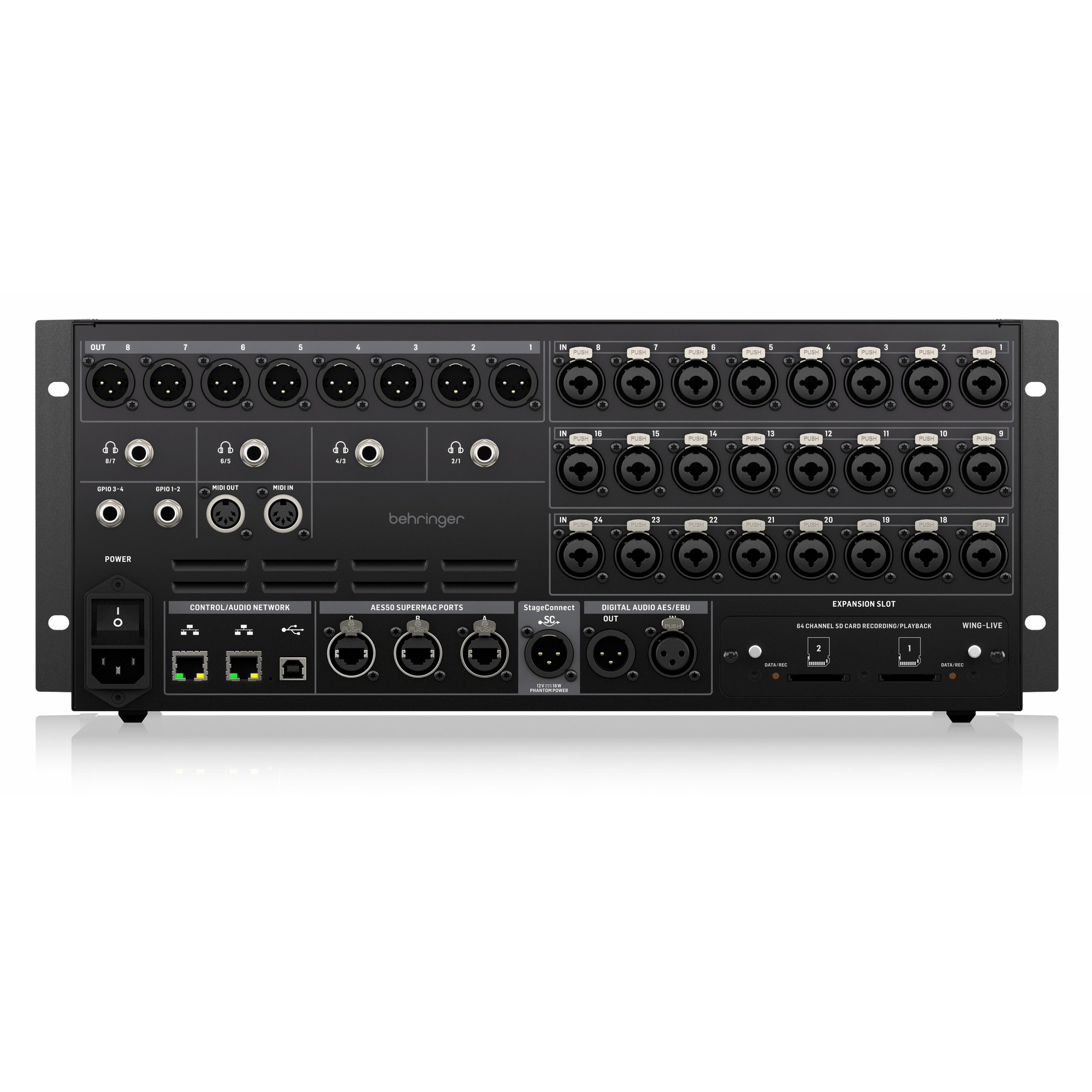 Behringer WING RACK DANTE32 цифровой микшер с установленной внутренней картой DANTE на 32 канала, 48 входных каналов, 10" сенсорный экран, 8FX, 16MIX, 8MATRIX, 4MAIN, 3хAES50, USB 2.0 audio, слот для внешних опциональных карт (по умолчанию установлена карта с двумя портами для SDI)