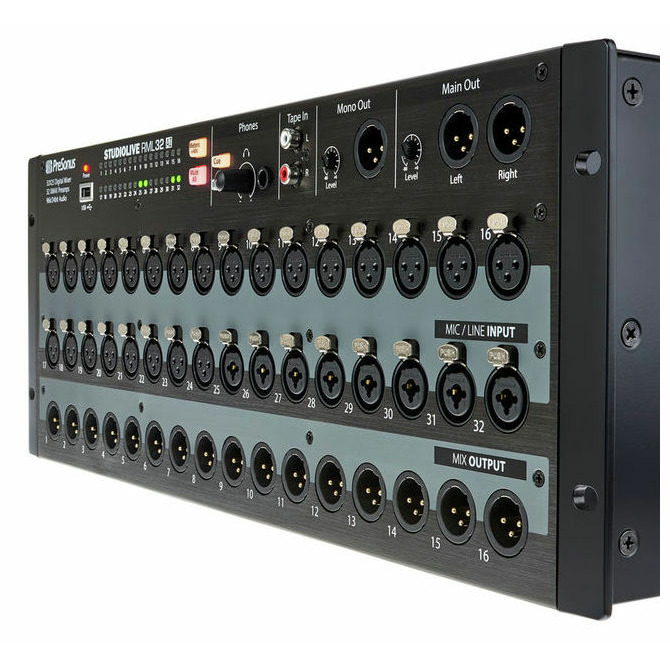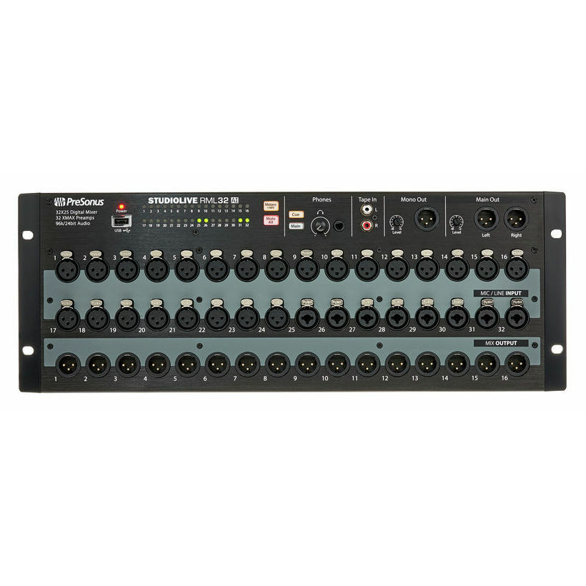 Система имеет 16 XLR и 16 XLR/1/4" комбо-входов, каждый с Xmax класса А аналоговым микрофонным предусилителем, 16 XLR выходов линейного уровня. RML32AI может выступать в качестве аудио интерфейса FireWire 800 для записи. Микшер позволяет захватывать аудио в 24бит/96кГц с использованием преобразователей Burr-Brown, он способен обеспечить профессиональное качество цифрового звука.