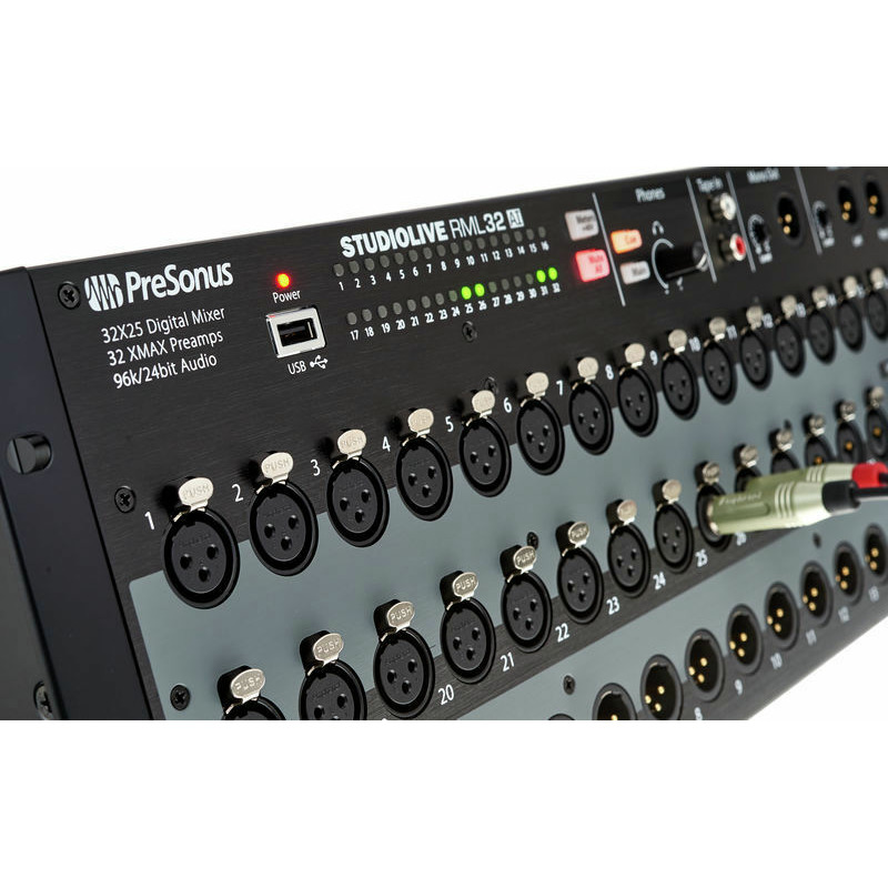 PreSonus StudioLive RML32AI цифровой рэковый пульт. Управлять микшером PreSonus StudioLive RML32AI можно при помощи программного обеспечения UC Surface для операционных систем iOS, Mac и Microsoft Windows, он предлагает полную интеграцию с сенсорным экраном при использовании с IPad или мультитач Windows 8 компьютером. Управление было разработано для быстрой и интуитивно понятной работы как в студии, так и при живых выступлениях. Благодаря Active Intergration Вы обладаете мощным управлением в реальном времени через Wi-Fi.