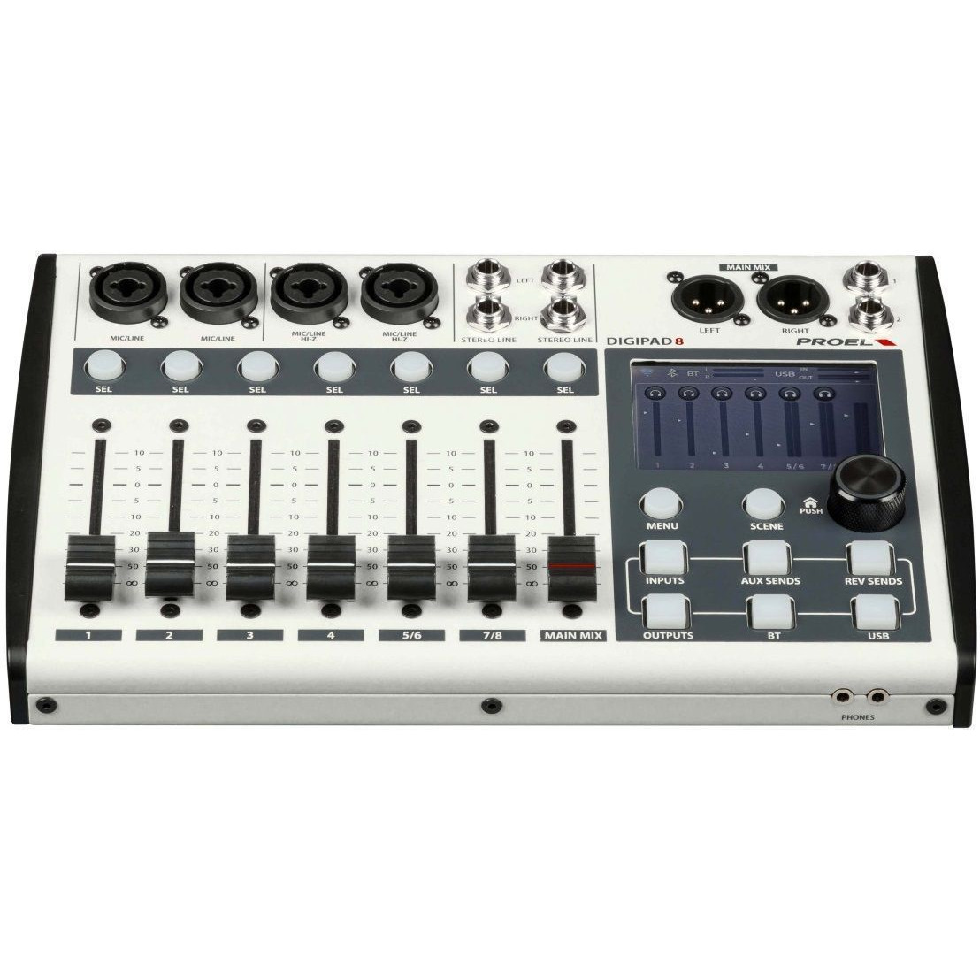 Proel DIGIPAD8 сочетает в себе мощность, гибкость и портативность, что делает его подходящим выбором для музыкантов, звукорежиссёров и создателей музыки, которым требуется профессиональный цифровой микшер с расширенными возможностями управления.