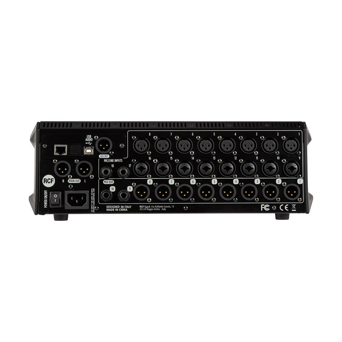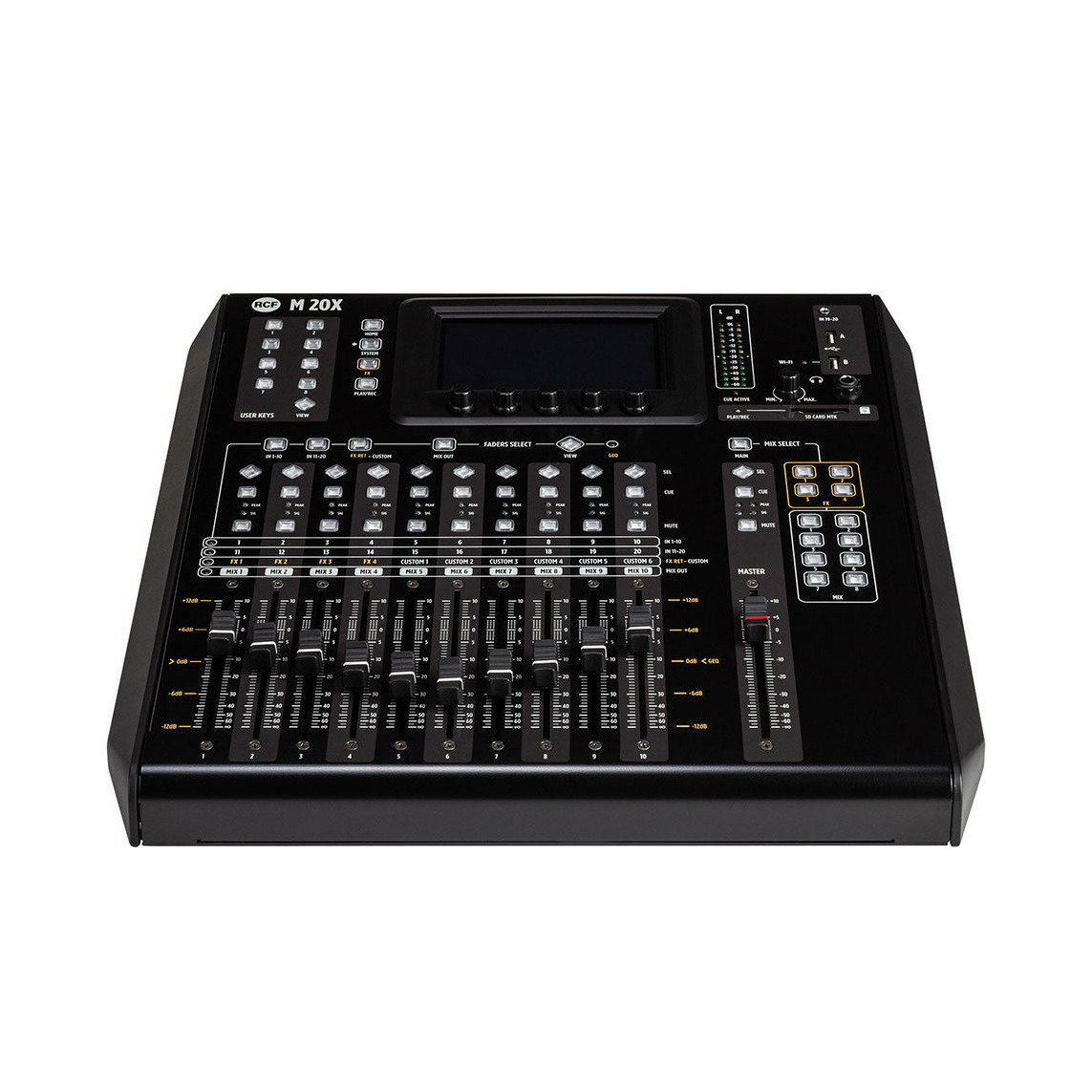 На задней панели M 20X расположены 8 микрофонных XLR-входов, 8 COMBO микрофонных/линейных входов, а также два дополнительных линейных входа на разъемах TRS jack. Выходная секция включает в себя 8 выходов XLR и два выхода TRS jack, через которые можно маршрутизировать все выходящие аудиопотоки. Имеется также два разъёма XLR для вывода основного микса, цифровой назначаемый AES/EBU выход, порт USB для подключения компьютера для записи/воспроизведения мультитрека, а также порт LAN для подключения внешней точки доступа Wi-Fi.