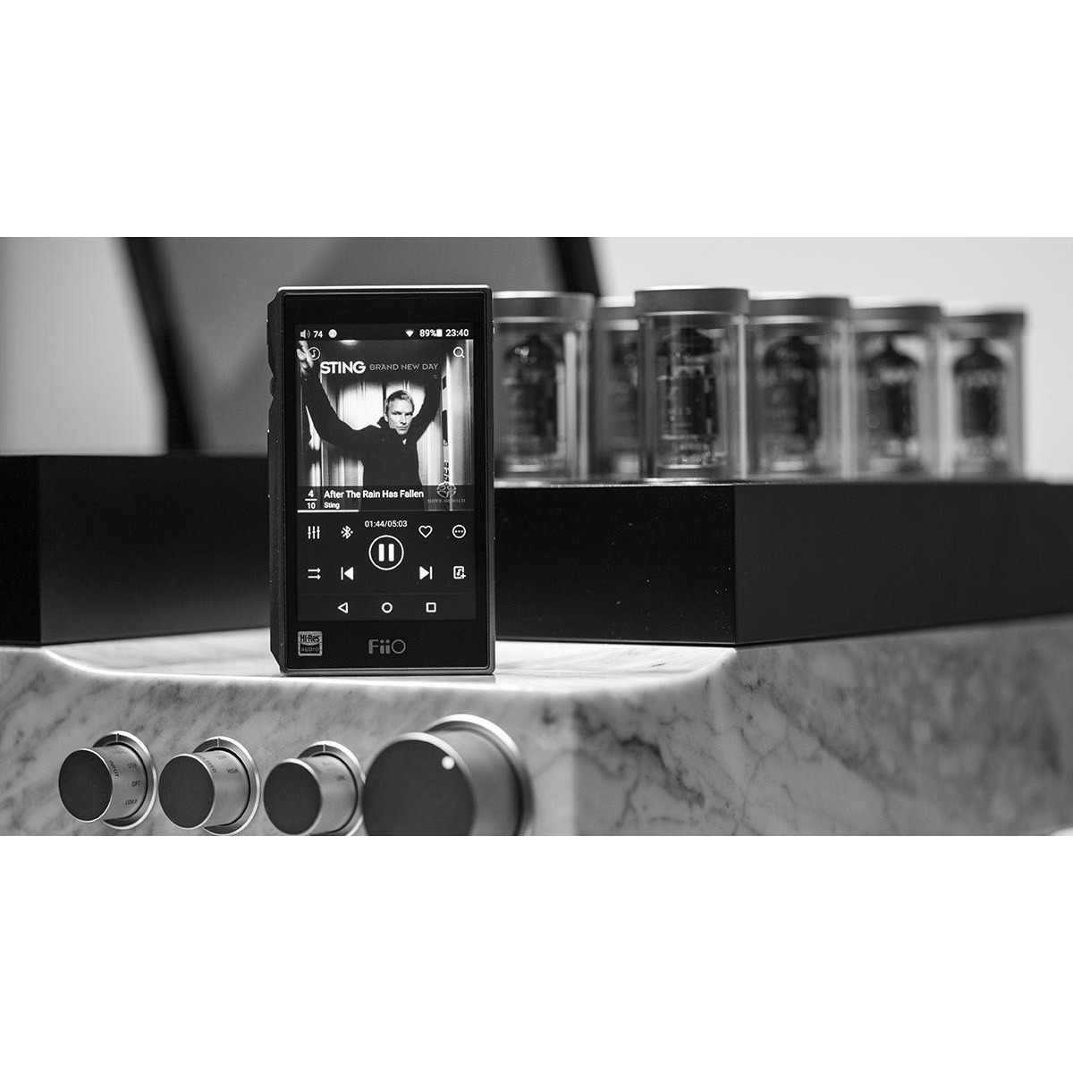 На фронтальной панели плеера находится яркий и контрастный цветной сенсорный дисплей, с помощью которого можно управлять всеми режимами его работы. FiiO X5S построен на базе двух ЦАП AK4490EN (по одному на канал), которые обеспечивают 32-битную точность обработки звука и поддерживают Hi-Res аудио PCM и DSD. Для подачи сигнала на наушники в плеере используются мощные операционные усилители аудиофильского класса OPA426. Для регулировки громкости звука в плеере используется удобное колесико, немного утопленное в боковую панель корпуса для защиты от случайных срабатываний. Для хранения музыкальной коллекции в проигрывателе имеется встроенная память объемом 64 Гб, которую можно дополнительно расширить с помощью двух карт Micro SD объемом до 512 Гб каждая.