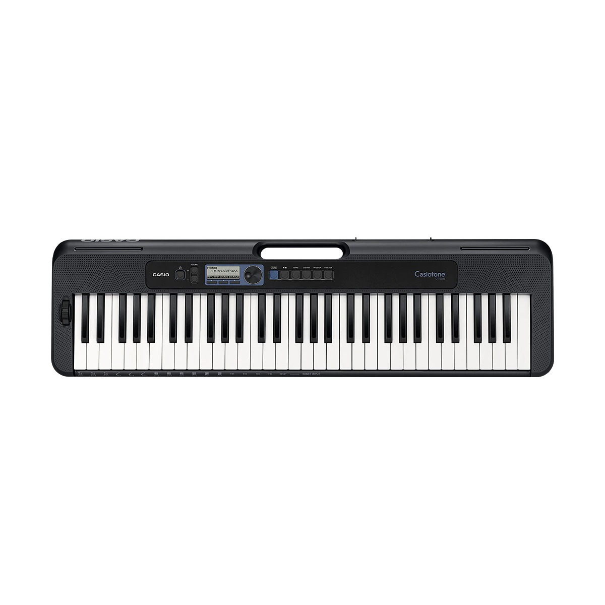 Casiotone CT-S300 имеет 61 полноразмерную клавишу фортепианного типа с глянцевым синтетическим покрытием. Тип клавиатуры - полувзвешенная, динамическая, активная. Клавиши реагируют на силу нажатия.