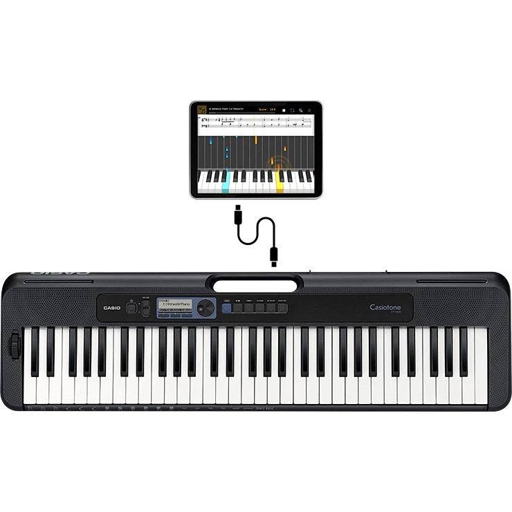 Синтезатор CT-S300 имеет встроенную систему обучения простого типа - отработка правой руки, левой руки, а затем обе вместе. А также вам будет доступно обучение через телефон/планшет с помощью игры "падающие ноты".