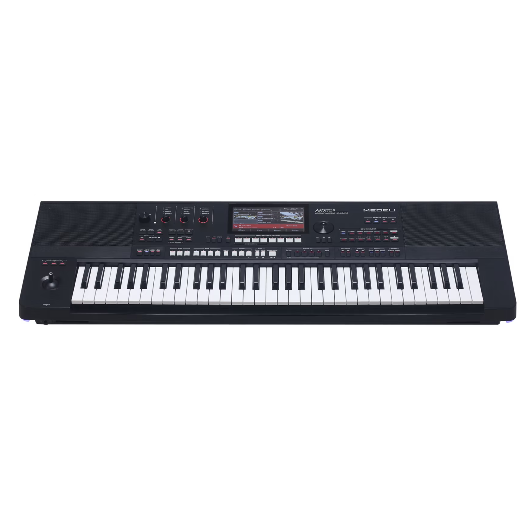 Medeli AKX10S — аранжировочная станция с 61 клавишей, предназначенная для создания музыки, аккомпанемента и записи. Модель оснащена расширенной звуковой библиотекой, технологией AXS для имитации акустических эффектов и сенсорным экраном.