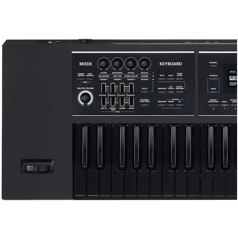 Roland JUNO-DS61B - легкий компактный синтезатор из легендарной линейки JUNO, полностью черная модель. Синтезатор снабжен 61-нотной клавиатурой, чувствительной к скорости касания. Модель включает в себя все звуки из популярного JUNO-Di, а также новые акустические и электрические модели пианино, органы и многое другое. В JUNO-DS61 звук фортепиано стал богаче, улучшен отклик для многих инструментов, в том числе и для большого количества органов. В дополнение к встроенному набору звуков, JUNO-DS61 поддерживает увеличение звуков через дополнительный слот под USB. С восемью пэдами вы можете разнообразить игру загрузкой сэмплов и подкладов из USB памяти. Также имеется микрофонный вход с регулируемым ревербом, автопитчем, эффектами и вокодером. Кроме того, имеется встроенный интуитивный паттерн-секвенсор. Интегрированный в него аудио-интерфейс помогает записать аудио и миди-данные, включая звуки с микрофона. Он также отлично интегрируется в музыкальный редактор с функцией DAW Control mode, позволяя управлять ПО прямо с панели инструмента. На задней панели размещены разъемы для джеков, MIDI и педалей. Питание осуществляется от адаптера 9 В или от 8 аккумуляторов Ni-Mh размера AA. В комплект также входит блок питания PSB-1U и шнур питания.