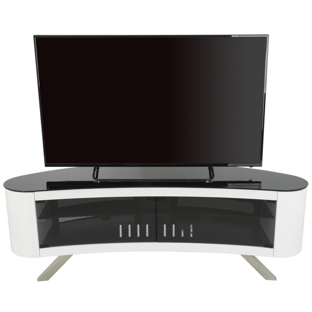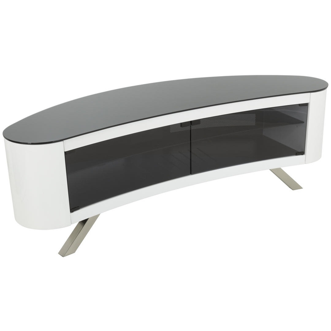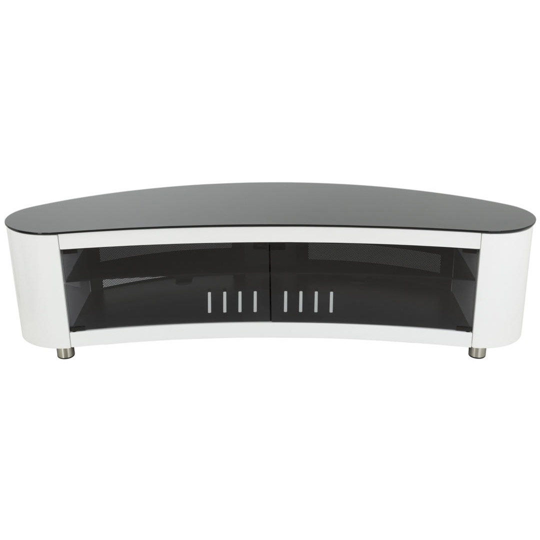 Гладкая ТВ-тумба бренда AVF имеет уникальную изогнутую форму. Подходит как для размещения в углу, так и вдоль стенки. Гладкий вогнутый фронт прекрасно дополняет изогнутые телевизоры, но так же подходит и для плоских экранов.