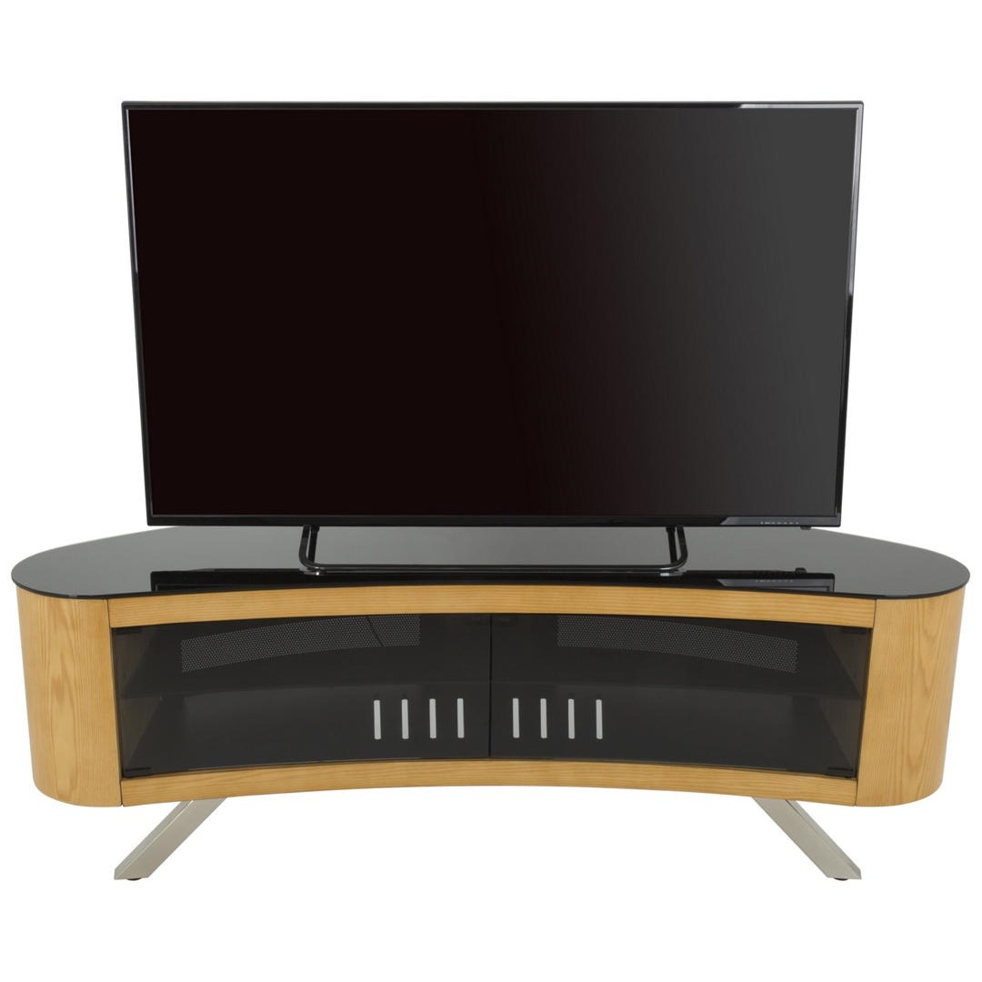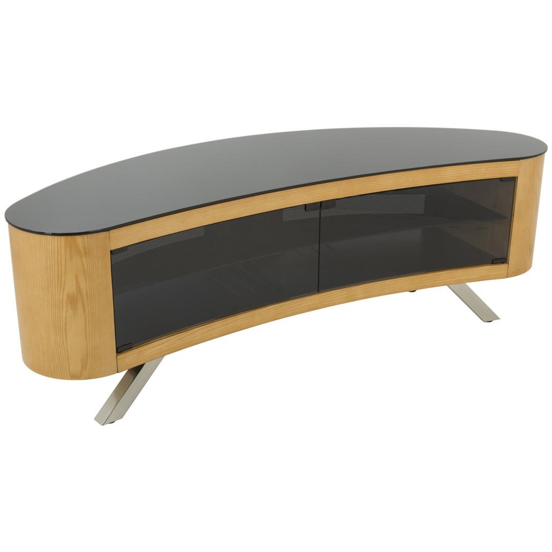 Гладкая ТВ-тумба бренда AVF имеет уникальную изогнутую форму. Подходит как для размещения в углу, так и вдоль стенки. Гладкий вогнутый фронт прекрасно дополняет изогнутые телевизоры, но так же подходит и для плоских экранов.