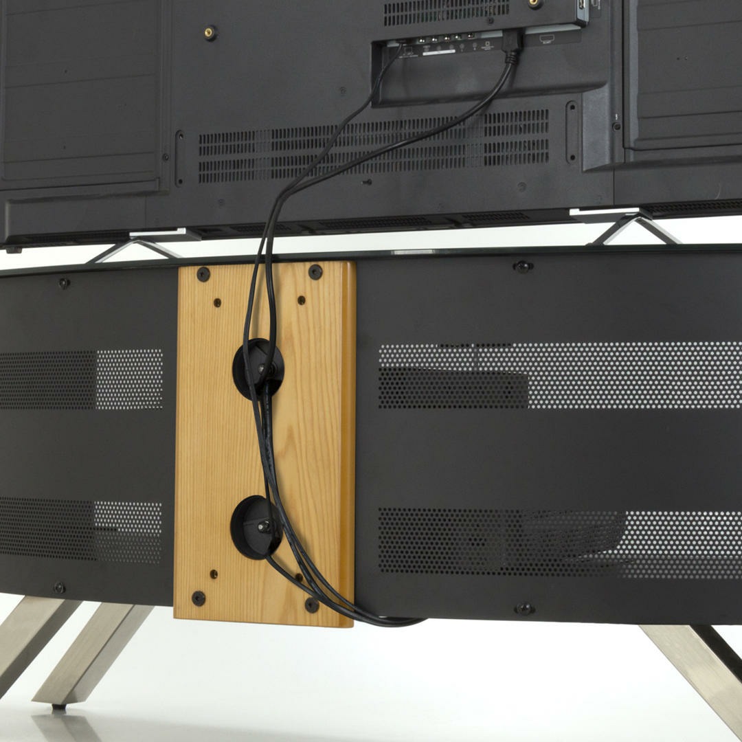 Полностью новая металлическая задняя панель позволяет присоединить монтажный стол AVF к задней панели и подвешивать телевизор над стойкой. Таким образом, вы получите больше места, не просверлившись в стене. Кроме того, поскольку эта задняя панель хорошо вентилируется, ваш комплект будет оставаться прохладным, а аудио, от звуковых баров, может свободно циркулировать.