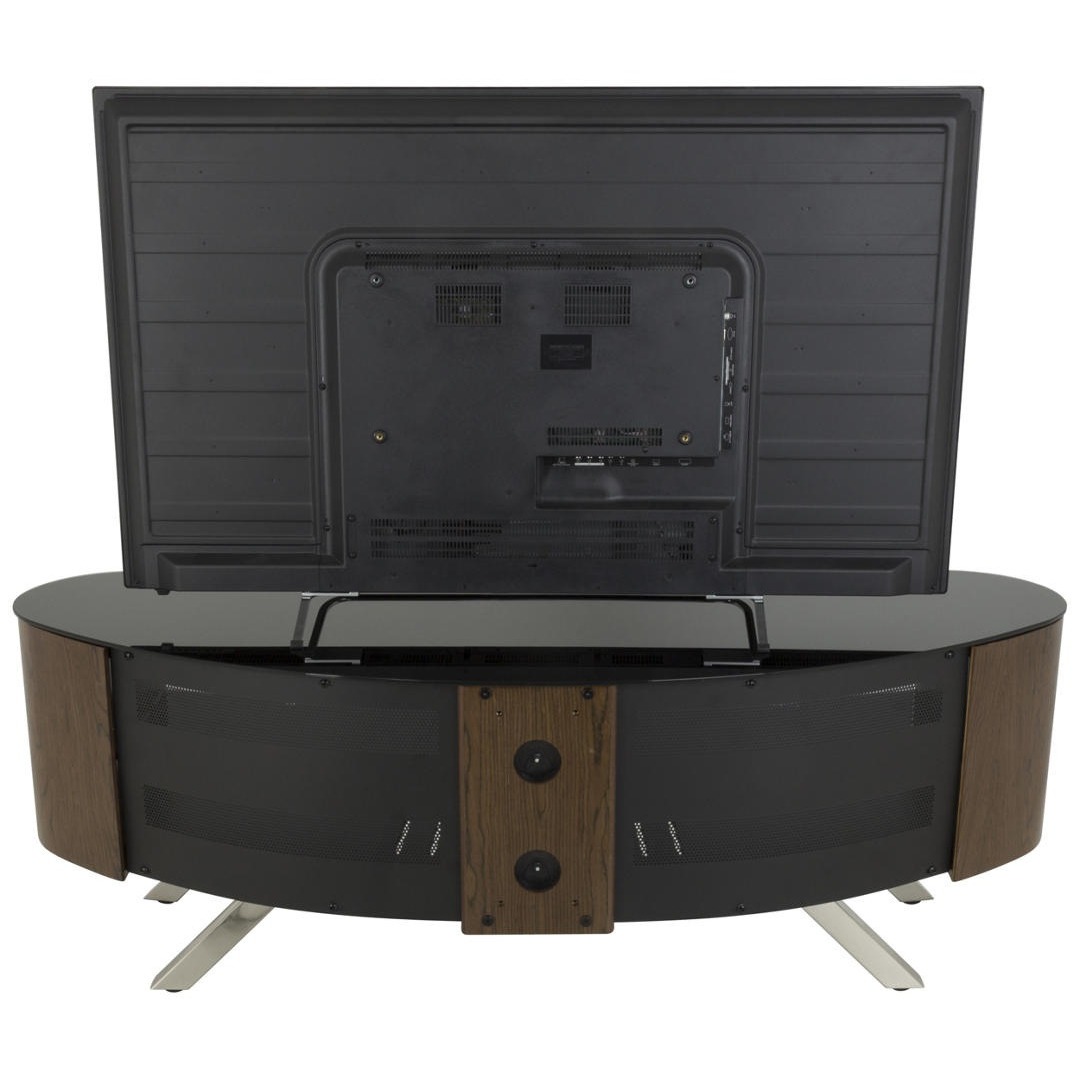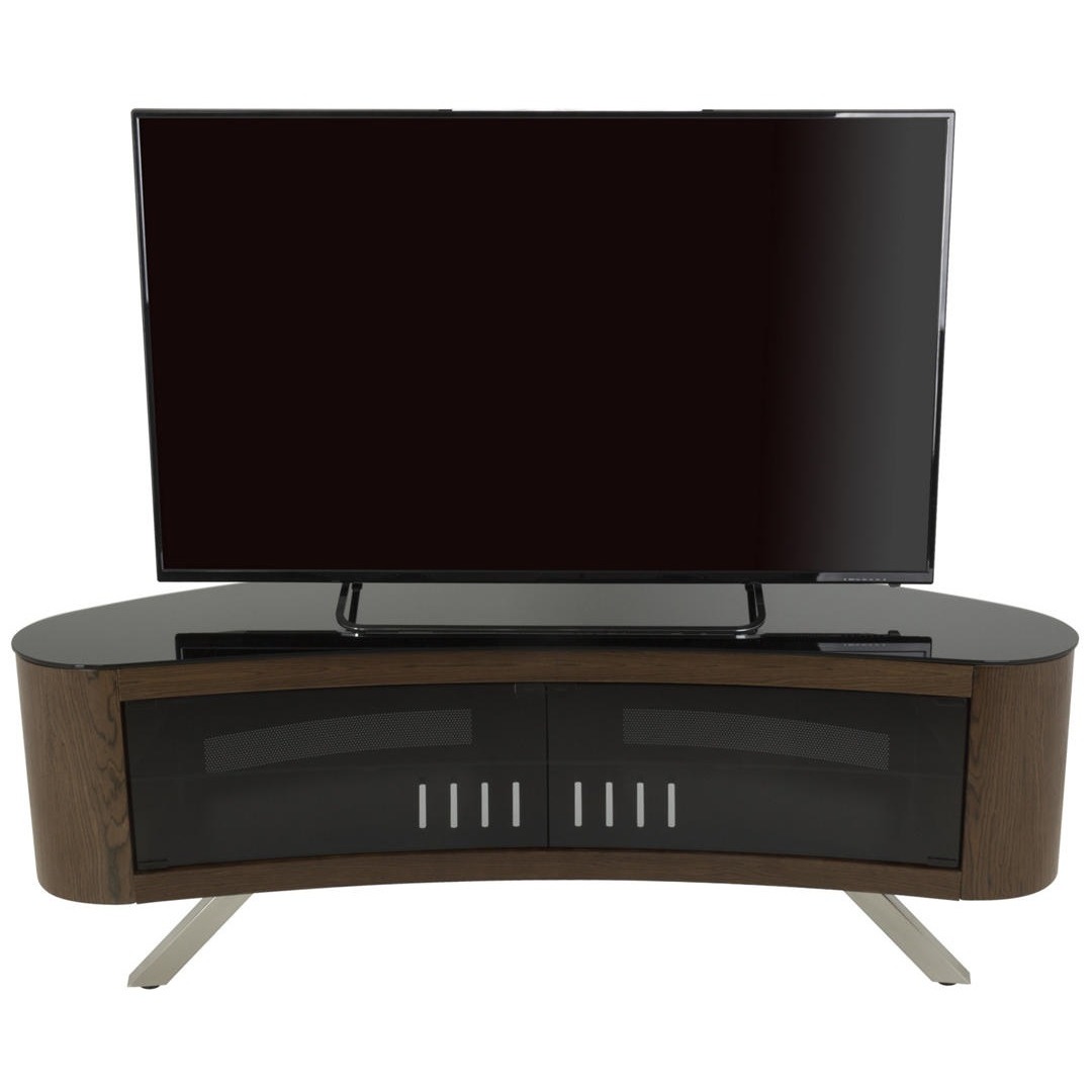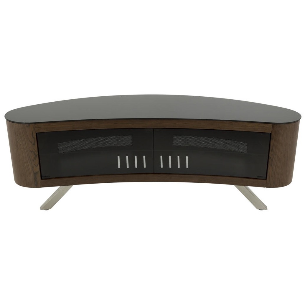 Гладкая ТВ-тумба бренда AVF имеет уникальную изогнутую форму. Подходит как для размещения в углу, так и вдоль стенки. Гладкий вогнутый фронт прекрасно дополняет изогнутые телевизоры, но так же подходит и для плоских экранов.