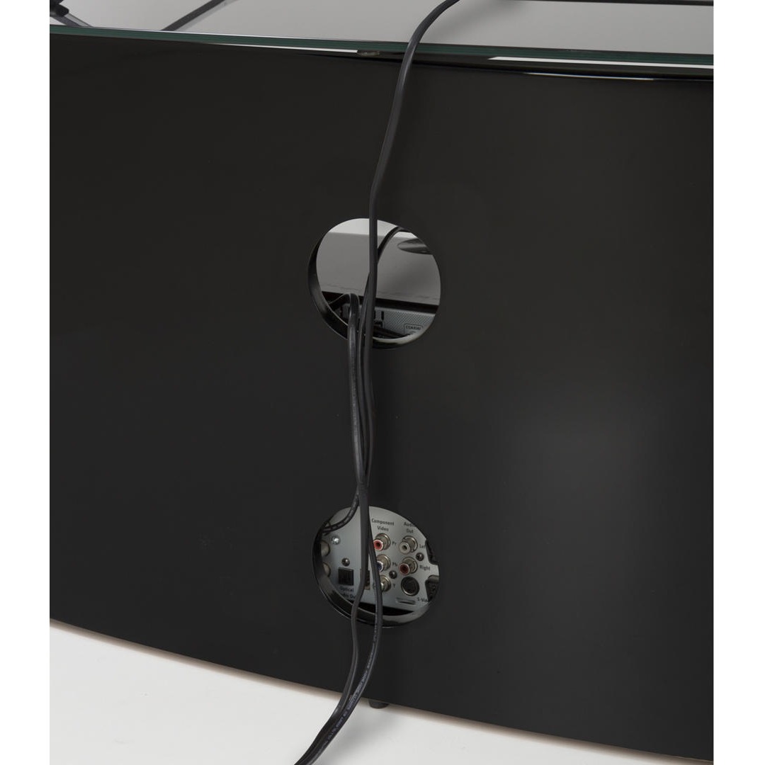 Эта тумба из натурального шпона и черного закаленного стекла обеспечит поддержку вашего телевизора и AV-оборудования. Максимальная нагрузка на верхнюю полку 60 кг, на нижние по 15 кг. Таким образом, у вас будет достаточно места для хранения ваших приставок, DVD-проигрывателей и игровых консолей.