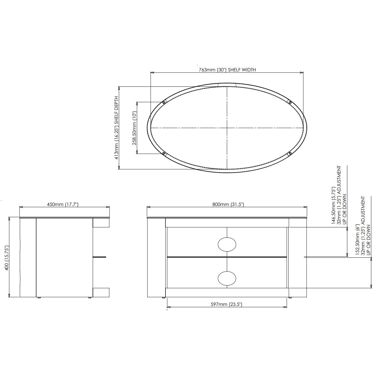 Оборудование домашнего кинотеатра легко заменить, так как AVF имеет регулируемую центральную стеклянную полку. Просто выберите нужную высоту при сборке.