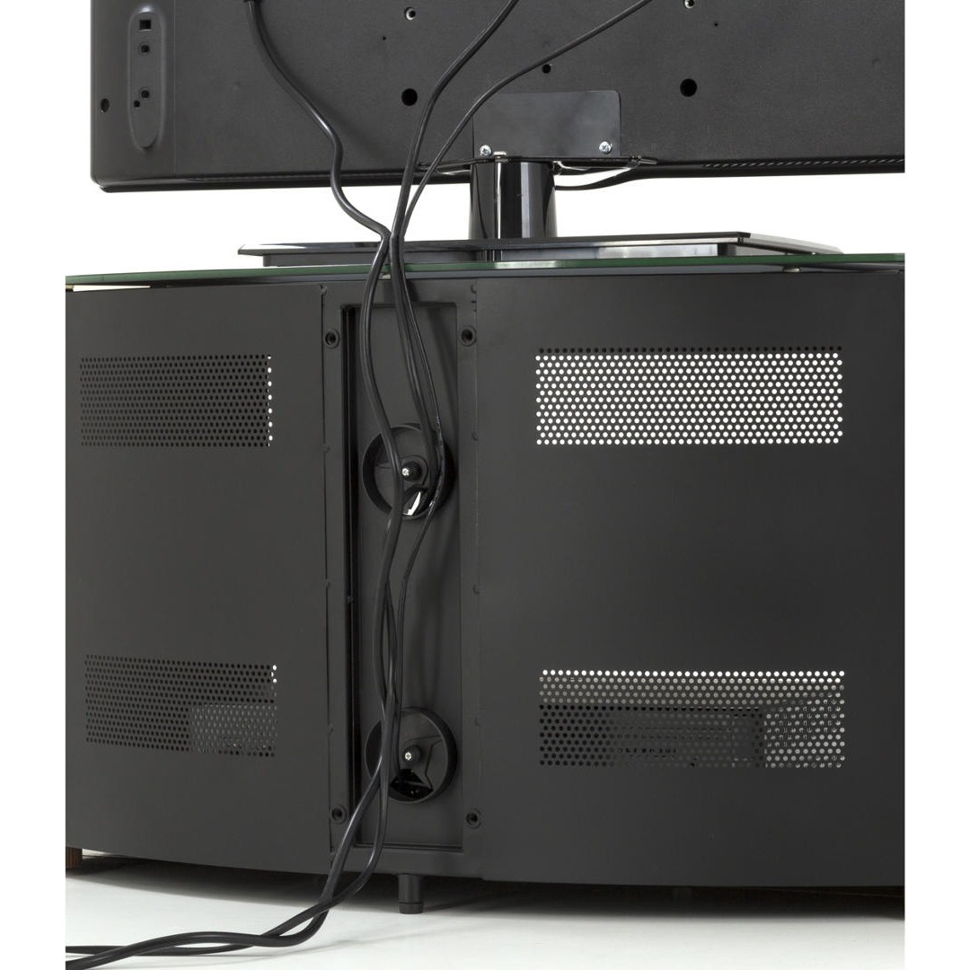 Эта тумба из натурального шпона и черного закаленного стекла обеспечит поддержку вашего телевизора и AV-оборудования. Максимальная нагрузка на верхнюю полку 37 кг, на нижние по 15 кг. Таким образом, у вас будет достаточно места для хранения ваших приставок, DVD-проигрывателей и игровых консолей.