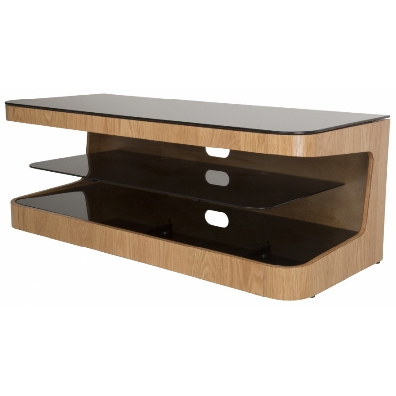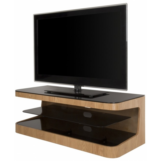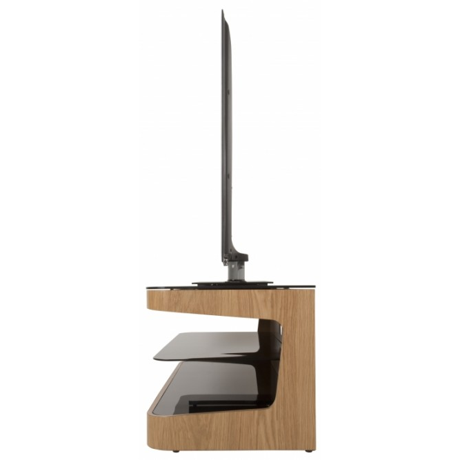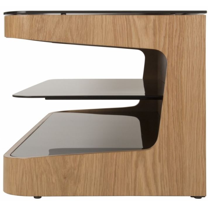 Эта тумба из натурального шпона и черного закаленного стекла обеспечит поддержку вашего телевизора и AV-оборудования. Максимальная нагрузка на верхнюю полку 55 кг, на нижние по 15 кг. Таким образом, у вас будет достаточно места для хранения ваших приставок, DVD-проигрывателей и игровых консолей.