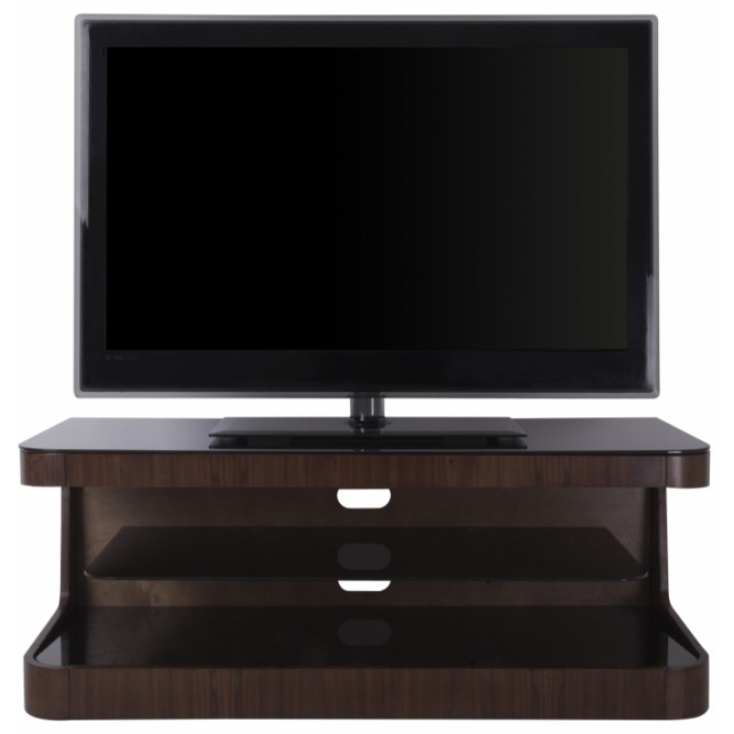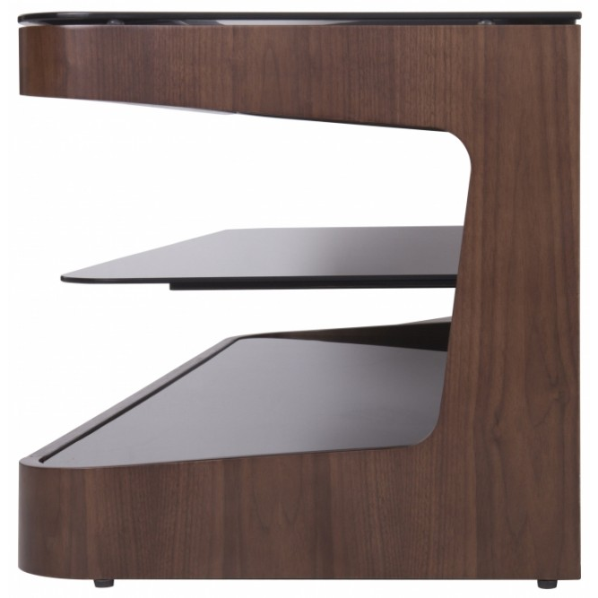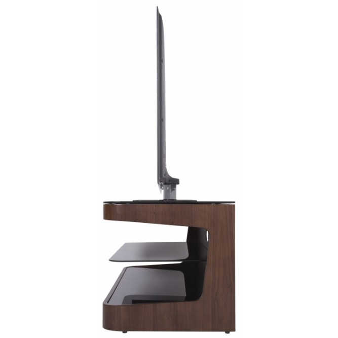 Эта тумба из натурального шпона и черного закаленного стекла обеспечит поддержку вашего телевизора и AV-оборудования. Максимальная нагрузка на верхнюю полку 55 кг, на нижние по 15 кг. Таким образом, у вас будет достаточно места для хранения ваших приставок, DVD-проигрывателей и игровых консолей.