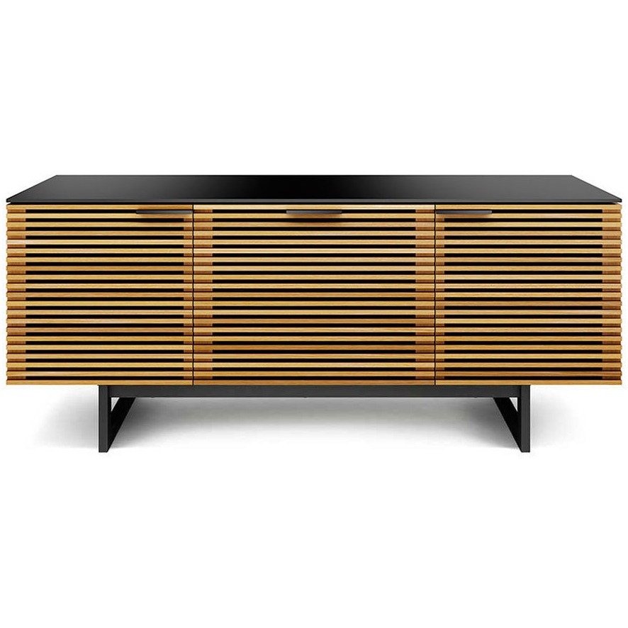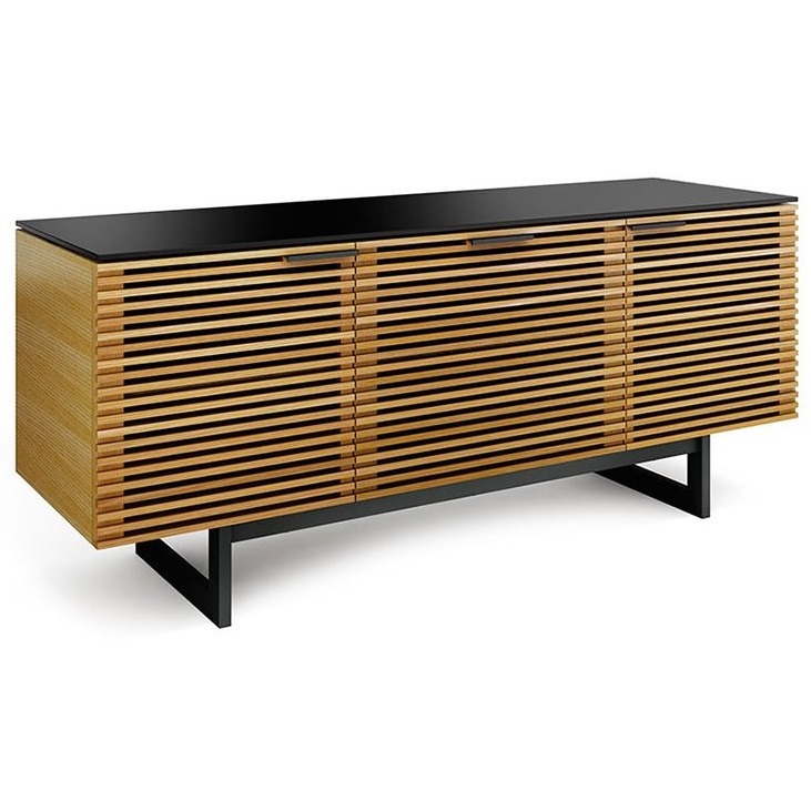 BDI Corridor 8177 имеет центральный выдвижной ящик для хранения аудио- и видеодисков, пультов и прочих гаджетов. Верхняя центральная полка, расположенная за закрытыми дверцами, служит для установки полноразмерного саундбара.