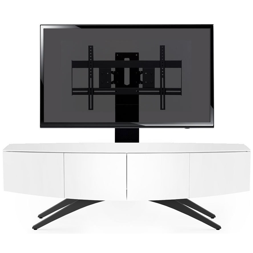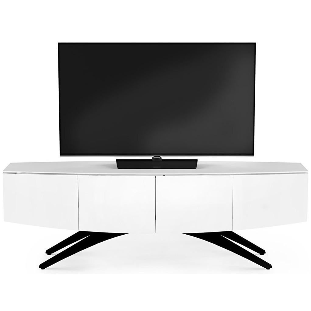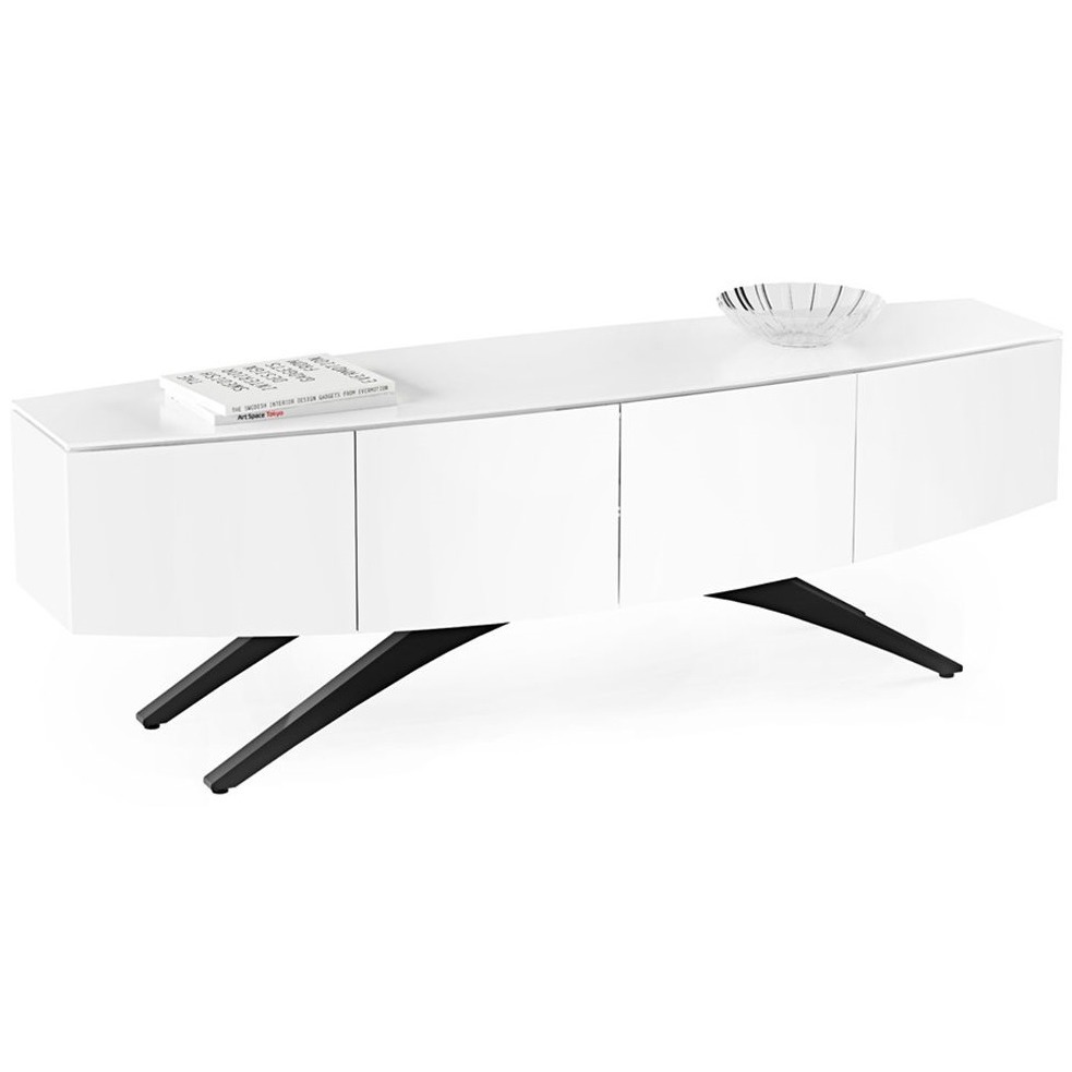 Тумба под телевизор BDI Venue 8649W (white). Venue – в переводе означает место встречи, которое должно быть прекрасным, когда речь идет о вечерней встрече с семьей или друзьями. И что бы оно было таковым, его облик разработал сам Луис А. Лара. Известный дизайнер, который публикуется в престижных журналах и чьи работы выставляются в известных музеях. В основе формы дуга, зрительно расширяющая образ. Двух метровая белая тумба опирается на черные ножки расположенные под эффектным острым углом. Отделка – натуральный окрашенный шпон. Внутреннее функциональное наполнение роскошно, как и внешнее. На тумбу можно ставить груз до 80 кг и телевизор с экраном до 85 дюймов, который защищен от опрокидывания, поставляемым в комплекте фиксатором. Так же BDI Venue 8649W можно дополнить специальным креплением с поворотным механизмом BDI Arena, которое освободит столешницу. Внутри четыре отсека для аппаратуры с регулируемыми полками. Центральные дверцы из крепкого стекла, которое дает возможность использовать пульт ДУ. Система скрытой укладки проводов и съемные задние панели сделают обслуживание вашей техники легким и непринужденным.