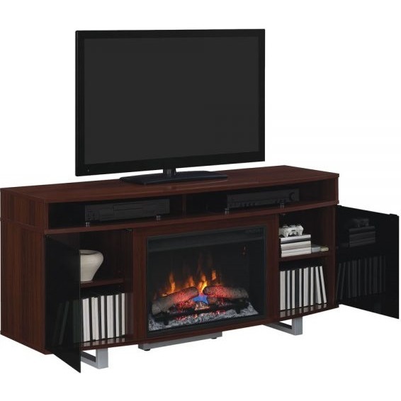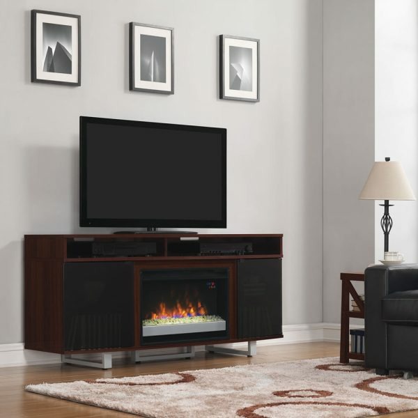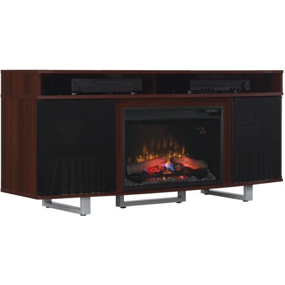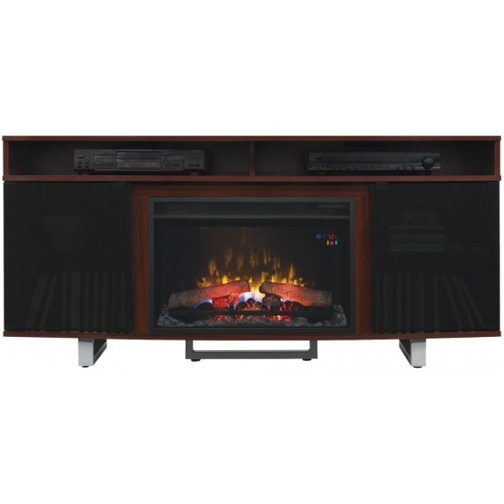 Bello ENTERPRISE LITE-26MM9864-NC10 — Этот впечатляющий декор из дерева с отделкой вишня глянец предлагает универсальность и функциональность с элегантным камином. Она может вместить большинство плоскопанельных телевизоров до 70 дюймов или до 47.6 кг, а также до 3 компонентов AV, и огромное количество игр, книг и мелких предметов. Каркас тумбы закреплен на П-образных ножках из нержавеющей стали с порошковым покрытием серебристого цвета. В центральной части располагается электрокамин — этот блок легко монтируется за считанные минуты. Электрокамин не только визуально преображает интерьер, но и способен обогреть комнату площадью 35 м2. Он обеспечивает реалистичный эффект пламени огня (многоцветная 2D проекция), обладает функциями регулировки яркости и формы пламени, регулировки температуры, таймера отключния, отключения нагрева и пультом дистанционного управления. Электрический камин соответствует всем строгим требованиям с точки зрения безопасности, окружающей среды и качества материалов. В верхней части три полки для AV-компонентов или звуковой панели