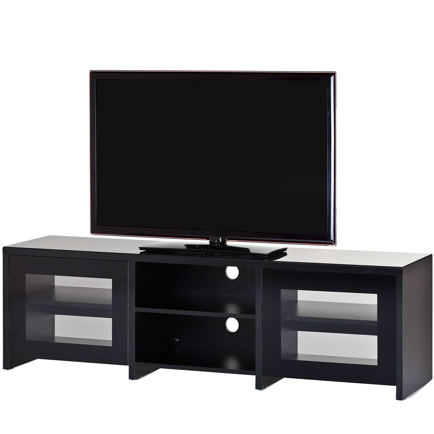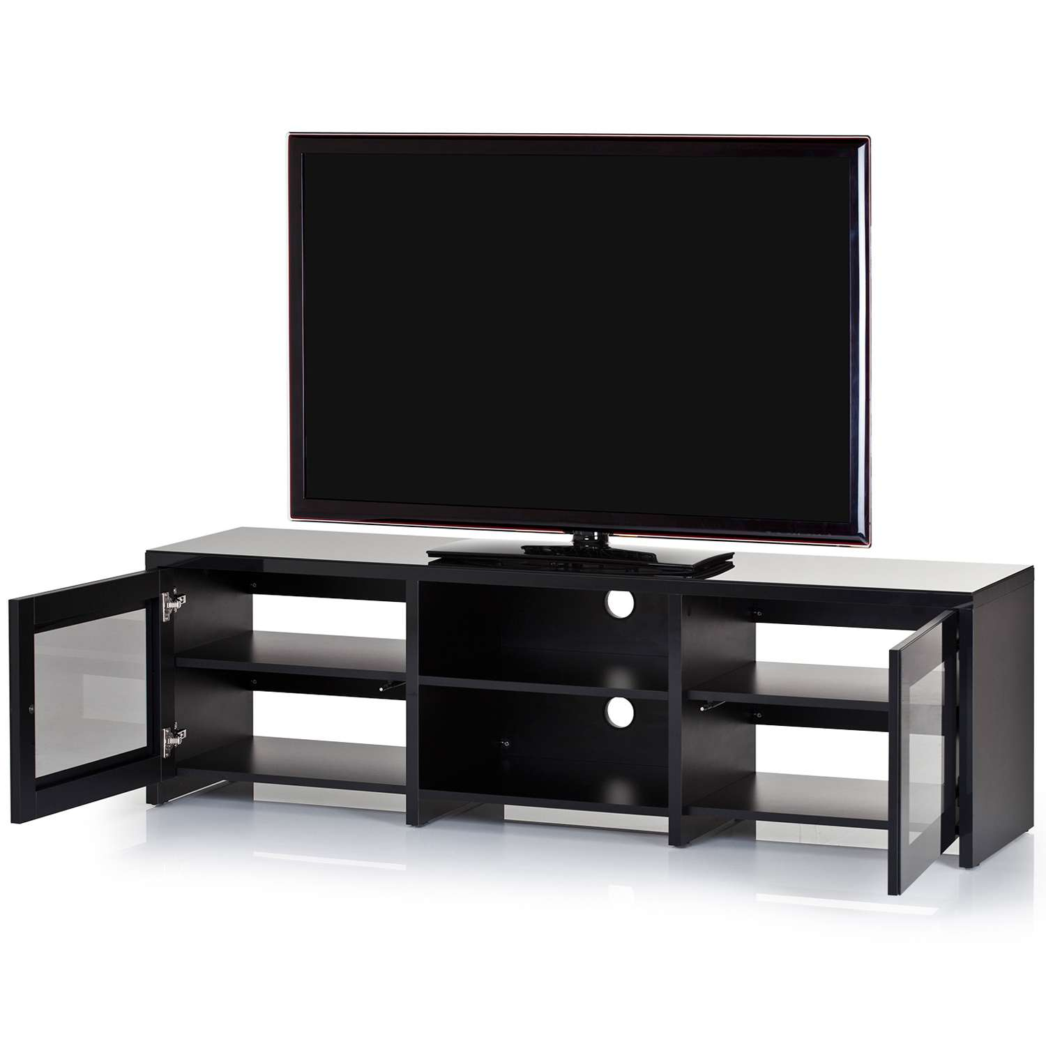 Стильная тумба под телевизор из закаленного стекла с полированными краями. Предназначена для больших телевизоров весом до 80 кг. В задней ножке расположен кабель-канал для скрытия всех кабелей и проводов. Стеклянные дверки пропускают сигнал пультов. Оснащена скрытой роликовой системой для легкого передвижения ТВ подставки даже вместе с телевизором.