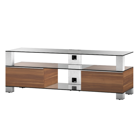 Стойка позволяет разместить большинство плоскопанельных телевизоров до 75 дюймов или весом до 80 кг, а также до 3 компонентов AV, саундбара, звукового проектора или АС центрального канала. Каркас тумбы закреплен на четырех ножках со скрытыми роликами для легкого перемещения. Три полки из закаленного прозрачного стекла для размещения AV-компонентов. В левой части расположен один выдвижной ящик для размещения аксессуаров. В правой части полка скрытая откидной дверцей. Внутренняя полка для индивидуального хранения медиа-носителей и аксессуаров. Встроенная система управления кабелями CMS скрывает и маршрутизирует провода и соединительные кабели в то время как внутренние слоты обеспечивают надлежащую циркуляцию воздуха для конвективного охлаждения