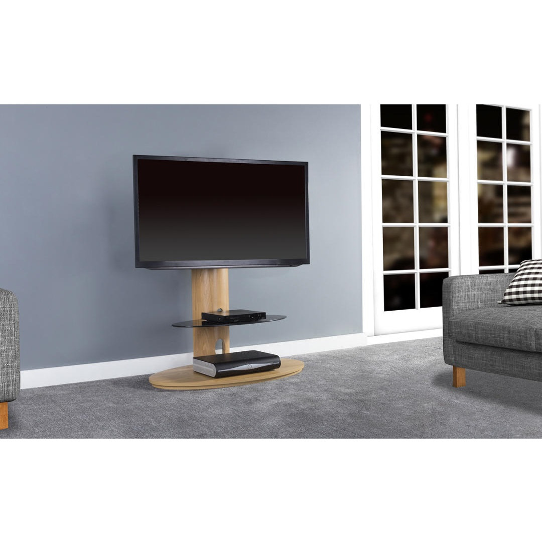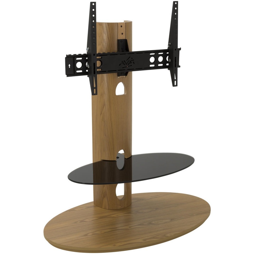 Эта тумба из натурального шпона и черного закаленного стекла обеспечит поддержку вашего телевизора и AV-оборудования. Максимальная нагрузка на крепление 37 кг, на полки по 15 кг. Таким образом, у вас будет достаточно места для хранения ваших приставок, DVD-проигрывателей и игровых консолей.
