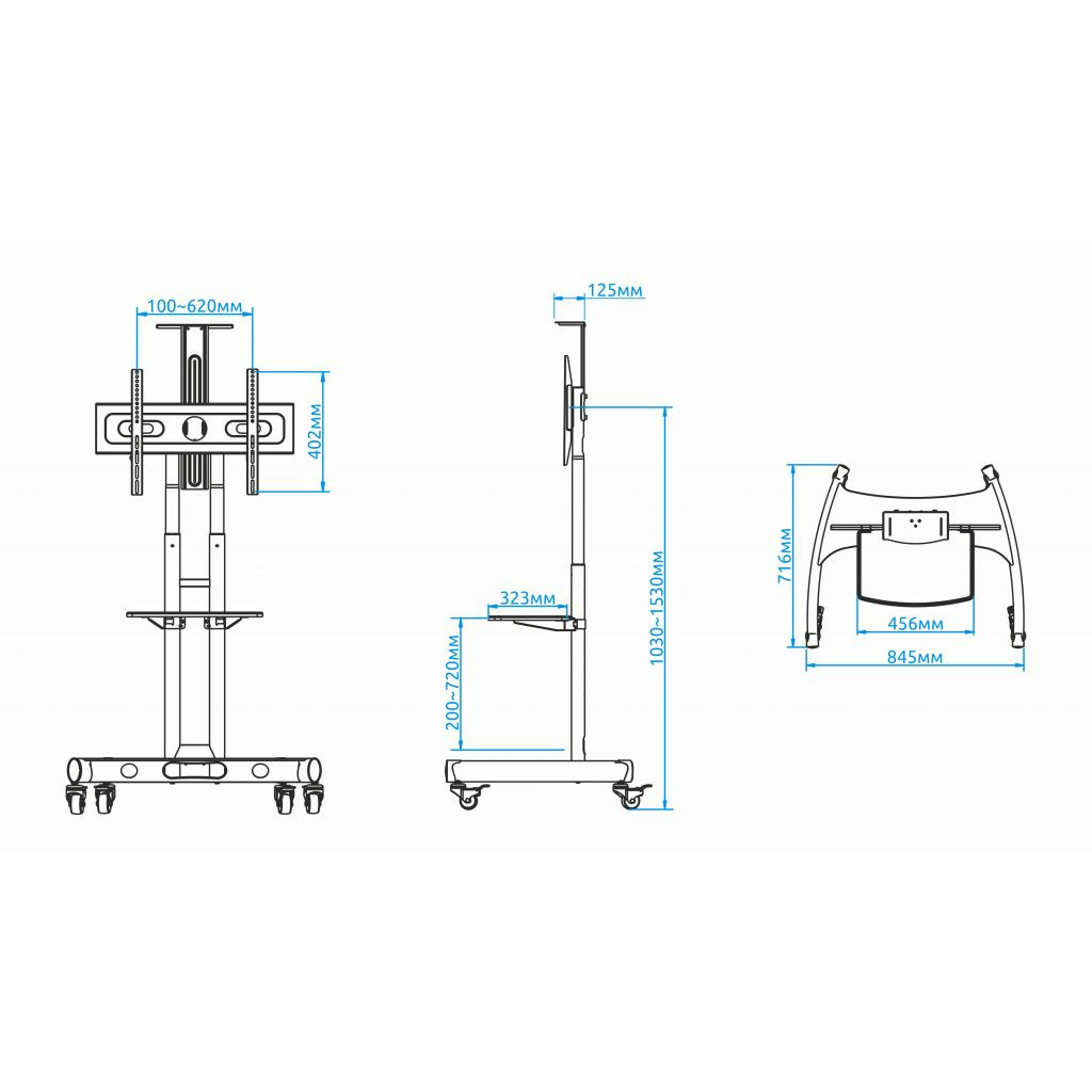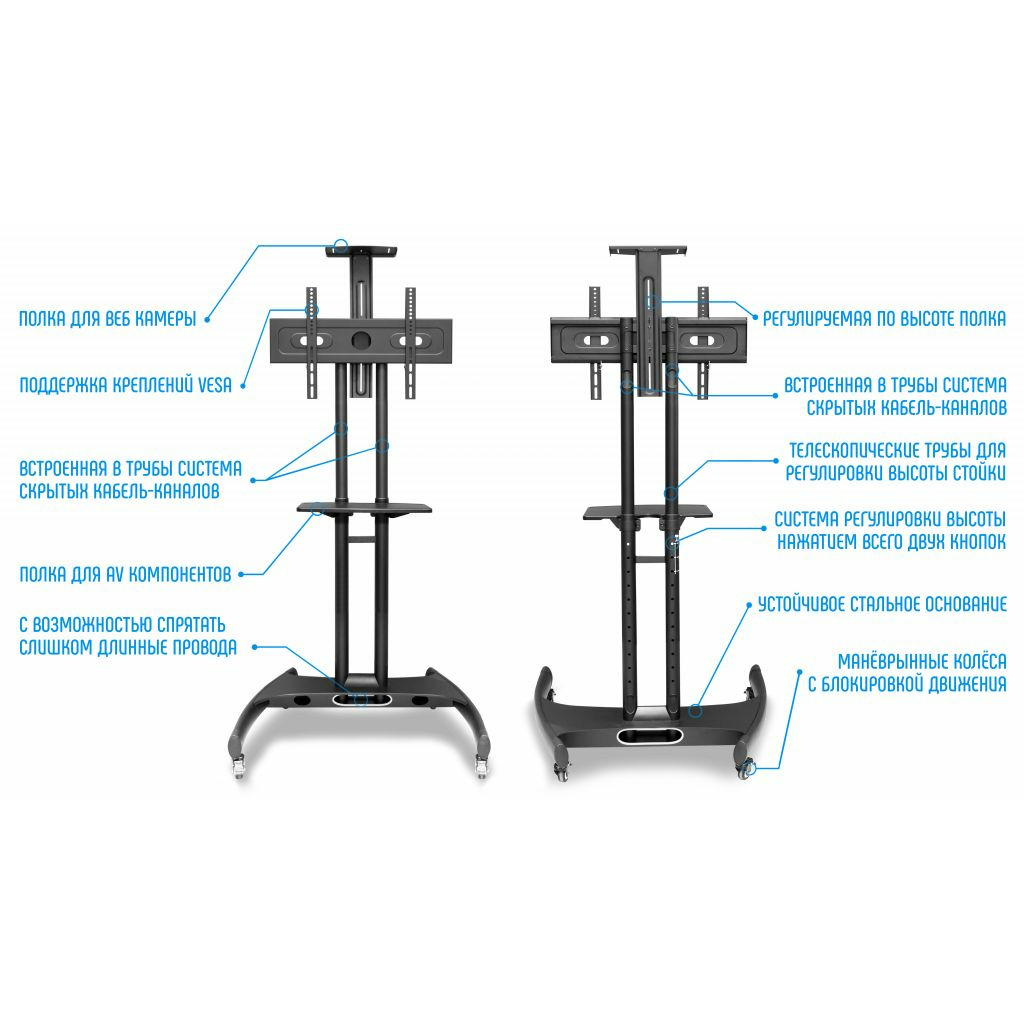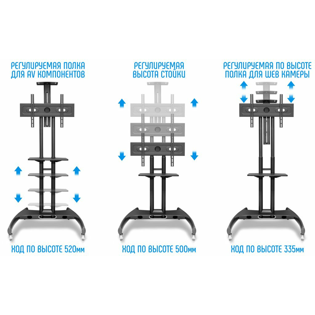 Стойка поставляется со стандартными аксессуарами, такими как полка над телевизором для камеры и полка для аксессуаров AV.