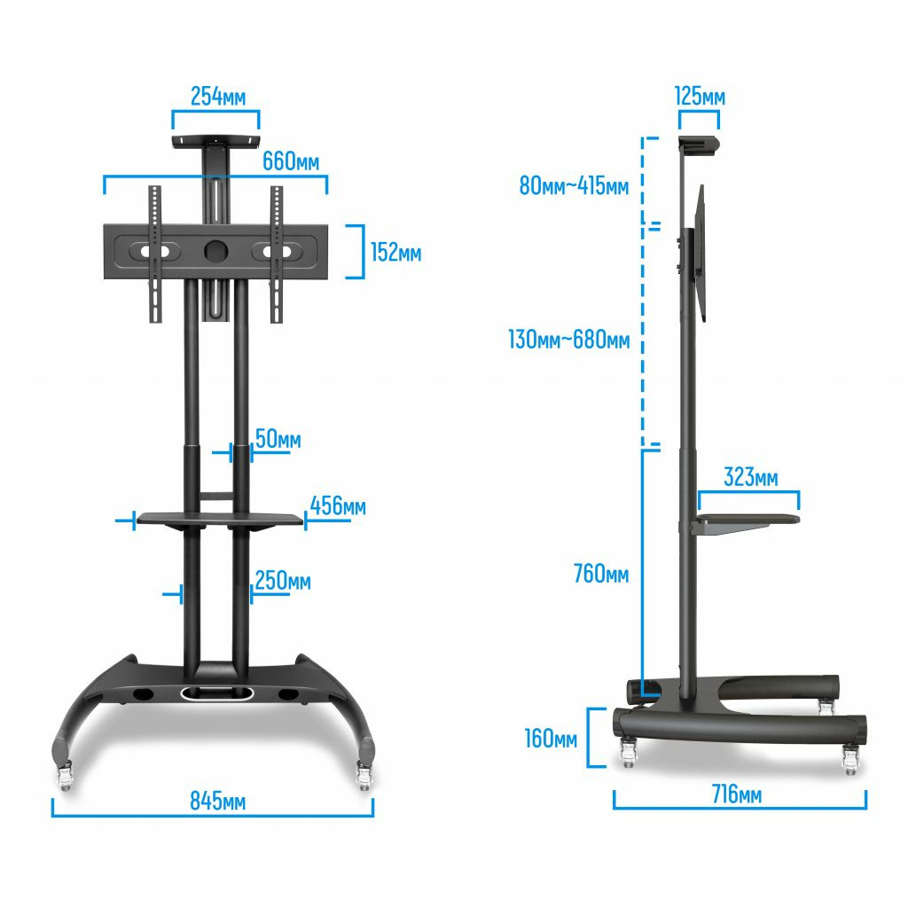- Регулировка высоты телевизора осуществляется легко и быстро с помощью специальных кнопок с пружиной