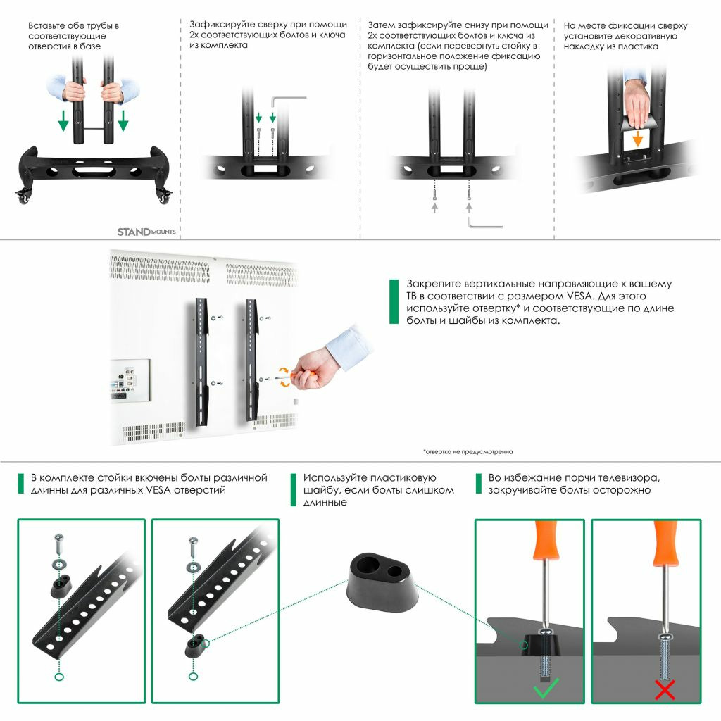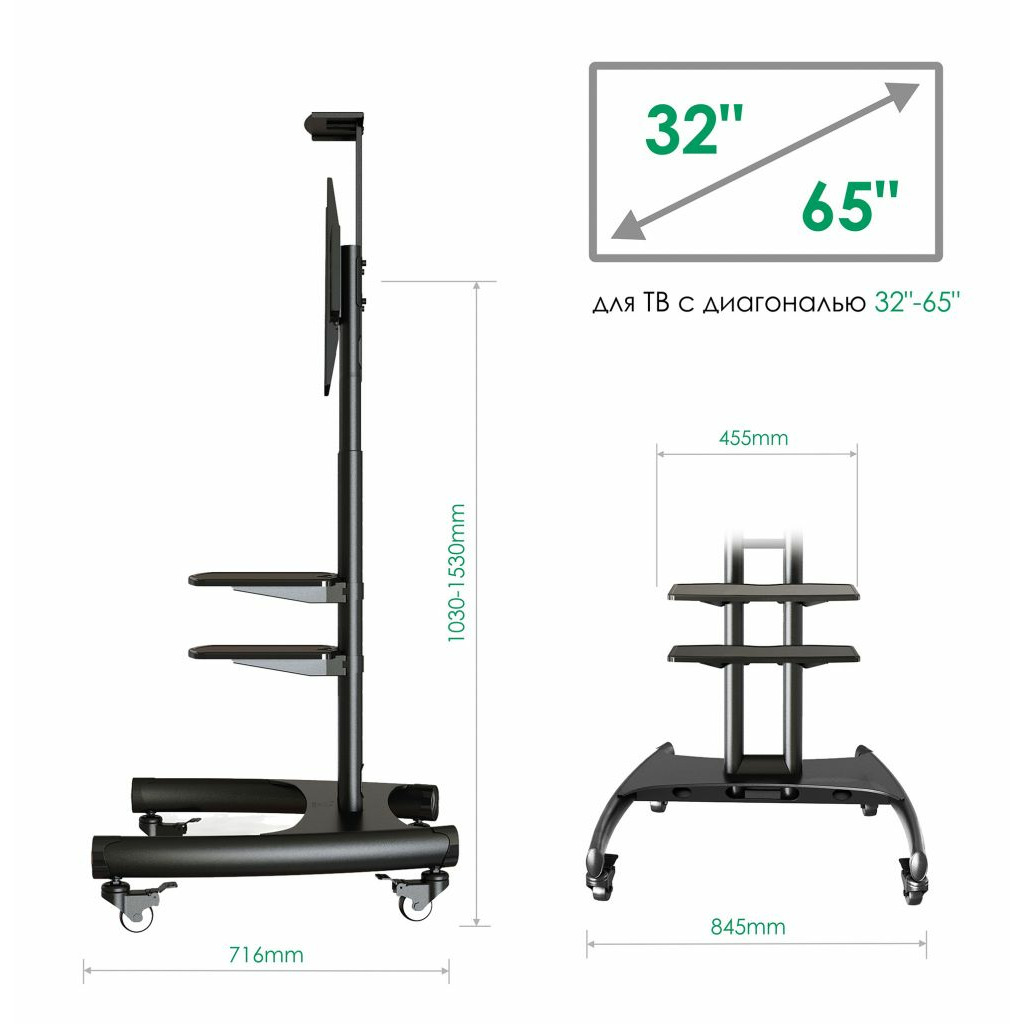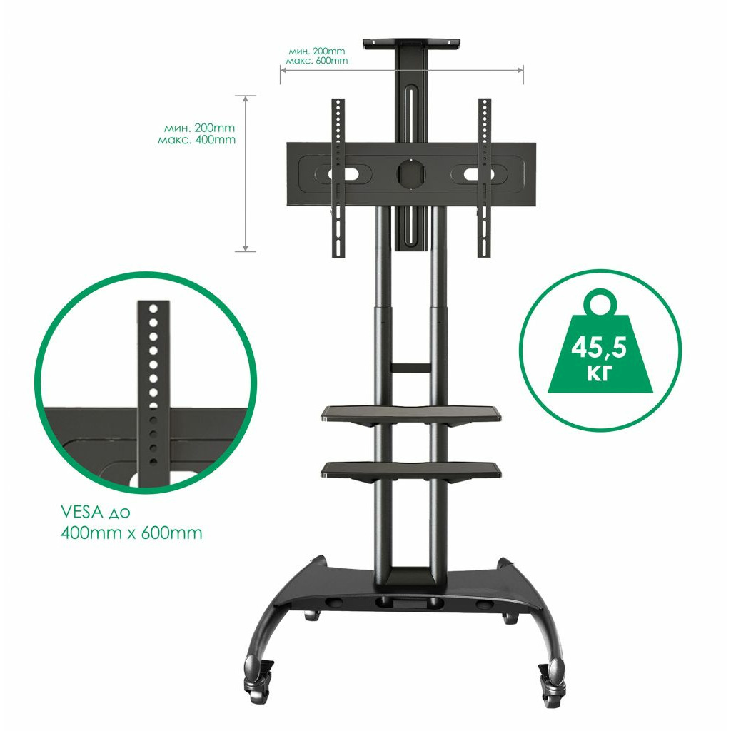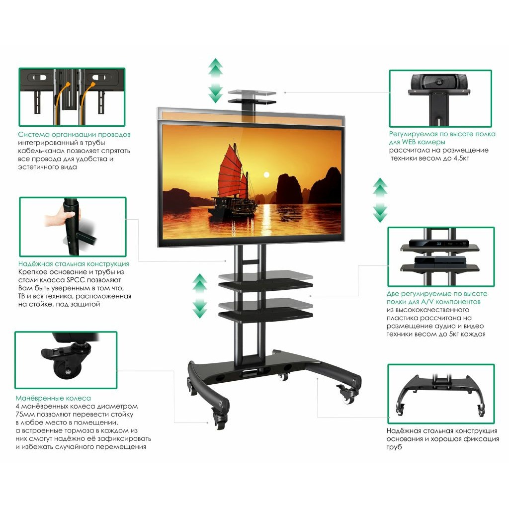 Стойка поставляется со стандартными аксессуарами, такими как полка над телевизором для камеры и две полки для аксессуаров AV.