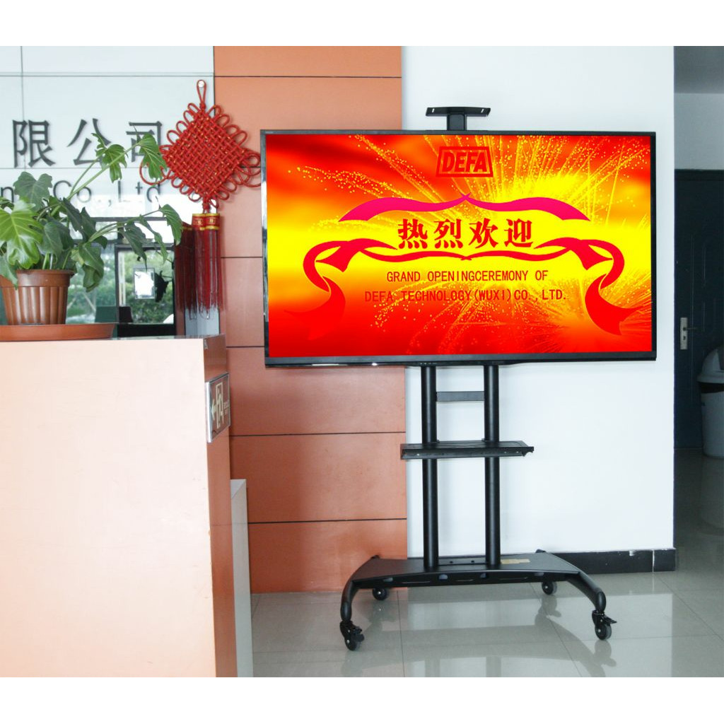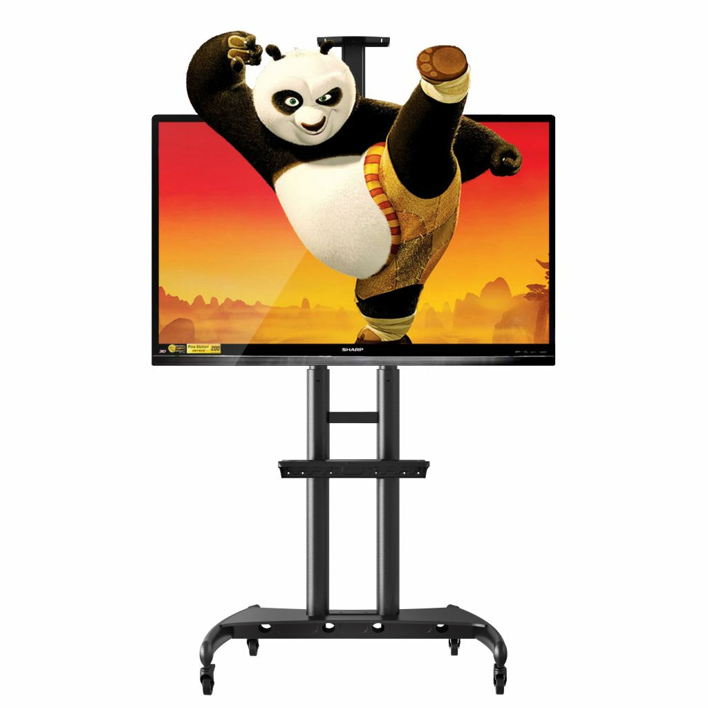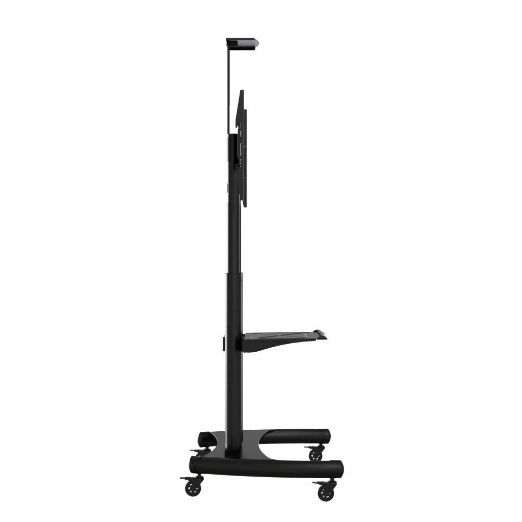 Если Вы ищите стенд с колёсами для большого, или не очень, телевизора, но при этом необходимо разместить всё на достаточно ограниченном пространстве, допустим в конференц-зал, переговорную, в свой кабинет, в выставочный зал, ресторан или кафе, то Мобильная стойка NB AVA1800-70-1P одно из самых лучших решений. Выполнена из сверхпрочной стали, на неё нанесено качественное чёрное порошковое покрытие, что придаёт ей ещё большей премиальности во внешнем виде. А две надёжные вертикальные трубы, дополнительно усиленные по центру и регулирующиеся по высоте от 1350мм до 1650мм, позволят Вам установить на стойку телевизор весом до 90,9кг, и диагональю до 70" и без особых усилий подкорректировать его положение по вертикали.