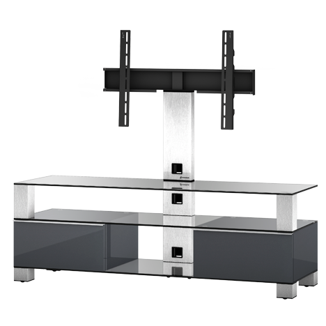 Cтойка под телевизор Sonorous MD 8143-C-INX-APL этот впечатляющий декор из МДФ с отделкой серый, серебра и прозрачного стекла предлагает универсальность и функциональность. Стойка позволяет разместить большинство плоскопанельных телевизоров до 75 дюймов или весом до 50 кг, а также до 5 компонентов AV, саундбара, звукового проектора или АС центрального канала,Элегантная стальная колонна с кронштейном и функцией поворота для крепления телевизора. Каркас тумбы закреплен на четырех ножках со скрытыми роликами для легкого перемещения. Три полки из закаленного прозрачного стекла для размещения AV-компонентов. В левой части расположен один выдвижной поддон скрытый откидной дверцей для размещения тяжелого АV-компонента. В правой части полка скрытая откидной дверцей. Внутренняя полка для индивидуального хранения медиа-носителей и аксессуаров. Встроенная система управления кабелями CMS скрывает и маршрутизирует провода и соединительные кабели в то время как внутренние слоты обеспечивают надлежащую циркуляцию воздуха для конвективного охлаждения Ваших компонентов.
