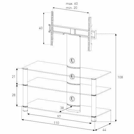 Стойка под телевизор PL 2330-B-SLV SONOROUS – стильная ТВ тумба серии GLASS & METAL турецкой фирмы Sonorous для установки телевизора с диагональю 46". Изготавливается из анодированного алюминия серебристогоцвета; полки – из черного закаленного стекла с плоским полированным краем. Стойка Сонороус PL 2330-B-SLV комплектуется поворотным кронштейном, позволяющим изменять угол просмотра телевизора на 35 градусов в обе стороны.