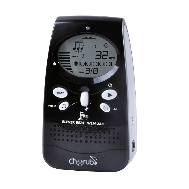 WSM-288 Метроном и тон-генератор Cherub. Метроном: 20 демонстрационных ритмов, A4: 420 - 460Hz. Выделение сильной доли: -/4,1/4,2/4,3/4,4/4,3/8,6/8. Диапазон теппа: 40 -260 уд/мин. Функция автоматического отключения (при отсутствии операций в течении 5-ти минут). Сохранение настроек после выключения питания. Отклонение в режиме метронома менее 1%. Отклонение в режиме тон генератора менее 1%. Потребляемая мощность: - в режиме метронома <50 мА - в режиме генератора <60 мА. Питание: 6V (4 эл.AAA) или от адаптера DC 6V (в комплект не входит). Размеры: 135х80x50 мм Вес: 150 г.