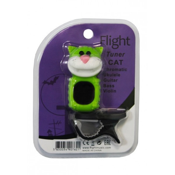FLIGHT CAT GREEN - это хроматический тюнер-мультяшка в форме кота, удобная цветная индикация (оранжевый - тюнер не настроен, зеленый - тюнер настроен), режимы настройки: чроматический, гитара, бас-гитара, скрипка, укулеле C, укулеле D, цвет: зеленый.
