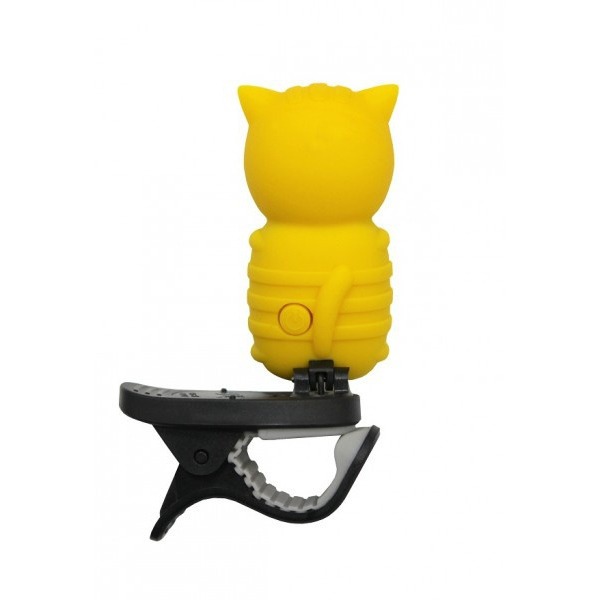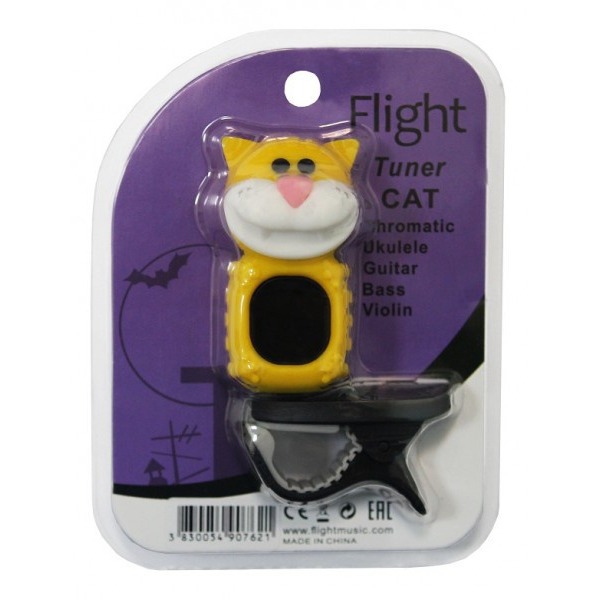 FLIGHT CAT YELLOW - это хроматический тюнер-мультяшка в форме кота, удобная цветная индикация (оранжевый - тюнер не настроен, зеленый - тюнер настроен), режимы настройки: чроматический, гитара, бас-гитара, скрипка, укулеле C, укулеле D, цвет: желтый.