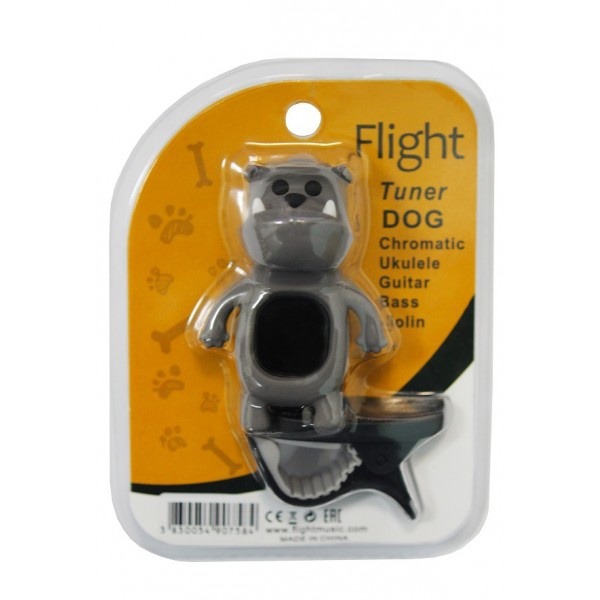 FLIGHT DOG GRAY - это хроматический тюнер-мультяшка в форме бульдога, удобная цветная индикация (оранжевый - тюнер не настроен, зеленый - тюнер настроен), режимы настройки: чроматический, гитара, бас-гитара, скрипка, укулеле C, укулеле D, цвет: серый.