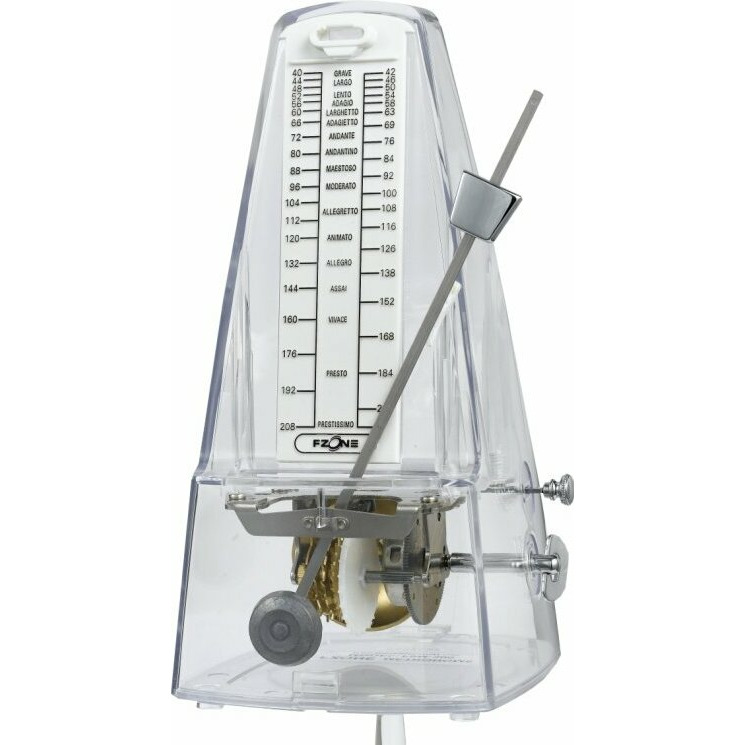 Держать правильный темп не будет проблемой с механическим метрономом FZONE FM-310. Начиная от Моцарта, все великие музыканты учились играть, используя метроном, и данная модель поможет вам играть в разных ритмах, а также укажет сильную долю с помощью звонка. Пластиковый корпус с пирамидальной формой создан в стильном современном образе. Разнообразное значение темпа в диапазоне 40-208 ударов в минуту четко отображается на передней панели, а заводной механизм имеет громкий звук щелчка. Метроном не требует батареек, что очень удобно, и заводится с помощью пружинной системы.