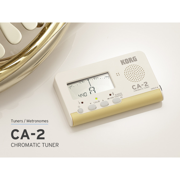 KORG CA-2 - цифровой хроматический тюнер. Компактный хроматический тюнер. Жидкокристаллический псевдо-стрелочный дисплей с повышенным разрешением. Широкий диапазон измерений от C1 до C8. Функция калибровки с поддержкой различных концертных настроек. Встроенный высокочувствительный микрофон для настройки акустических инструментов. Вывод сигнала опорного тона через встроенный динамик (режим Sound Out) (A4/Bb4, 12 нот), C4 (261.33 Гц) - C5 (523.25 Гц). Настройка тона в мажорной/минорной терции.