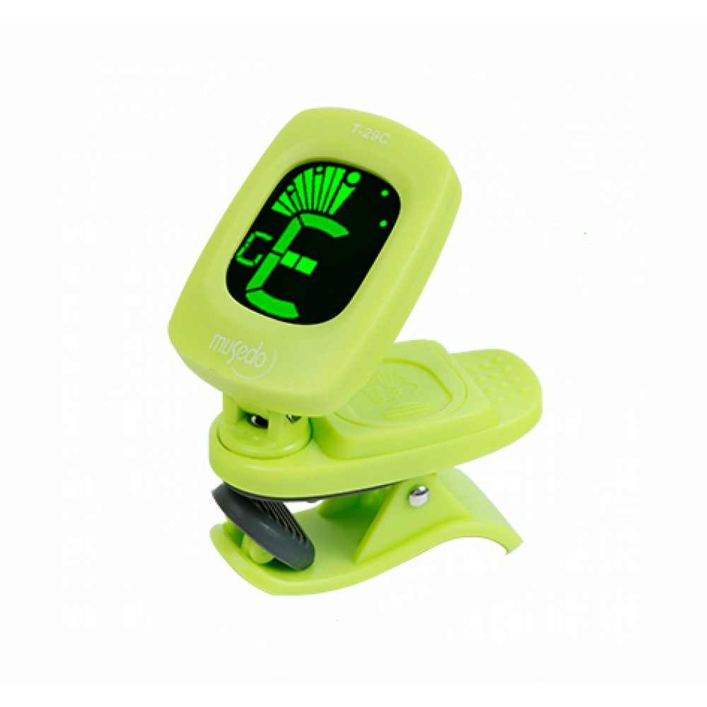 Musedo T-29G-GR Тюнер цифровой гитарный на прищепке, зеленый. Первый автоматический тюнер в своем классе. После того, как тюнер фиксируется на головке грифа инструмента, он включается автоматически, и автоматически выключается после снятия. Если тюнер остается на головке грифа гитары, он автоматически отключается через 5 минут, вне зависимости то того, используется он или нет. Встроенный пьезодатчик увеличивает точность настройки. Когда струна настроена, подсветка становится ЗЕЛЕНОЙ. КРАСНАЯ подсветка означает слишком высокий звук, ОРАНЖЕВАЯ — низкий. Настройка: гитарная 6E 5A 4D 3G 2B 1E. Питание: 3V (CR2032) литиевая батарея.