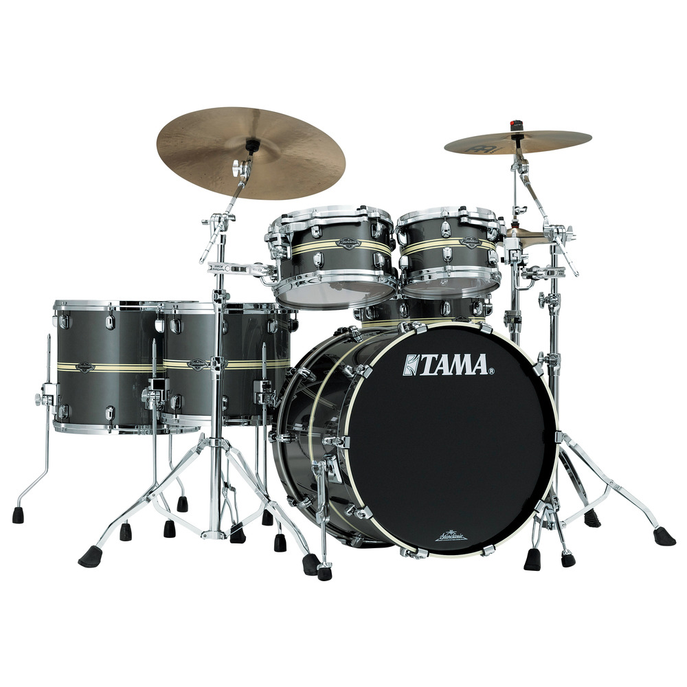 TAMA PP52HZS-GMS – барабанная установка премиального класса из линейки STARCLASSIC PERFORMER B/B. Отличительная черта этой серии – корпуса томов выполняются из 7 слоёв и двух видов древесины, корпуса бас-барабана – из 8 слоёв. В конструкции томов используется четыре слоя березы снаружи и 3 слоя бубинги внутри, в конструкции бочки – 5 слоёв берёзы и 3 слоя бубинги. За счет такой конструкции достигается гибридное звучание, которое сочетает в себе четкость и отлично сфокусированную атаку, которые даёт берёза, и богатые, глубокие низы, получаемые за счет внутренних слоёв бубинги. Применение высококачественных литых обручей и продуманной системы крепежей позволяет добиться прекрасной отзывчивости, великолепного резонанса. Крепежи работают в сочетании с обручем барабанов как одно целое, а специальные резиновые прокладки надежно защищают корпуса барабанов от механических повреждений и предотвращают возникновение царапин и потёртостей. В предлагаемый комплект PP52HZS включено 5 барабанов: бас-барабан PPB22EZ, тома PPT10H и PPT12H, напольные тома PPF14A и PPF16A, а также 2 крепления для томов MC69. Установка представлена в эффектном цветовом исполнении - цвете оружейной стали с полосой «Gun Metal Classic Stripe».