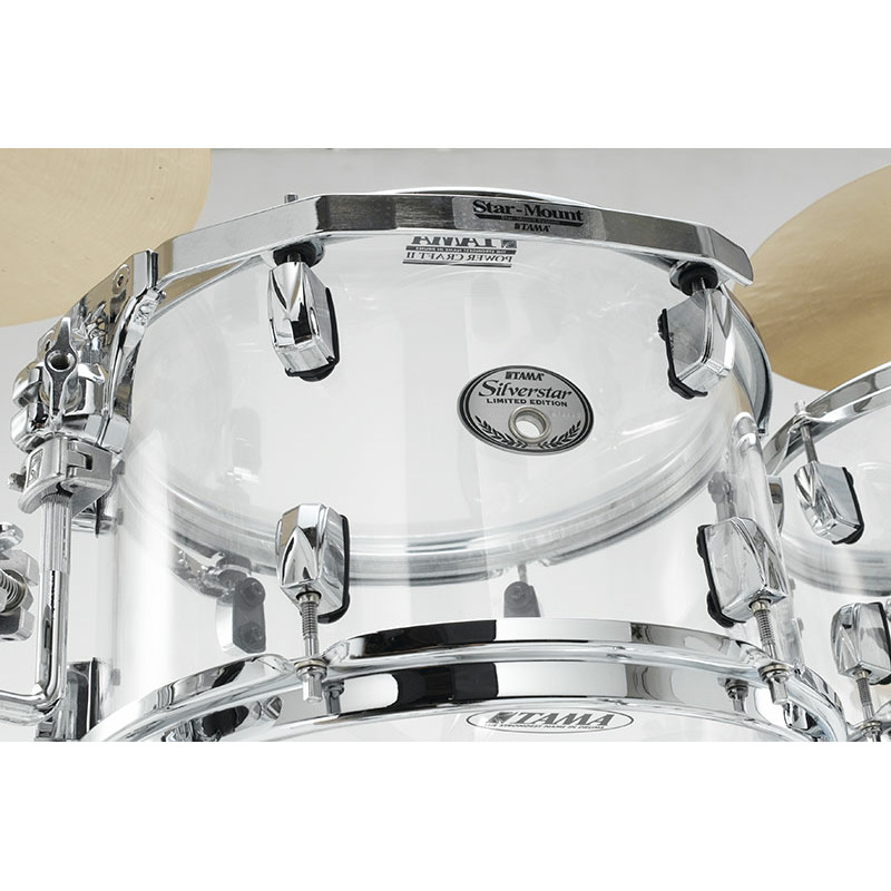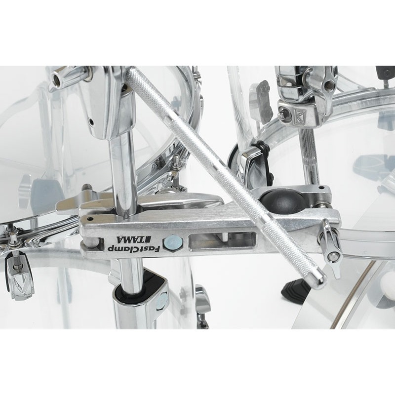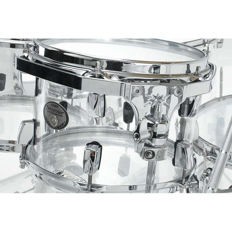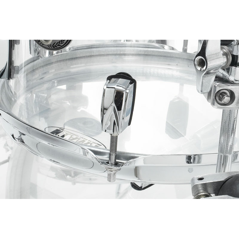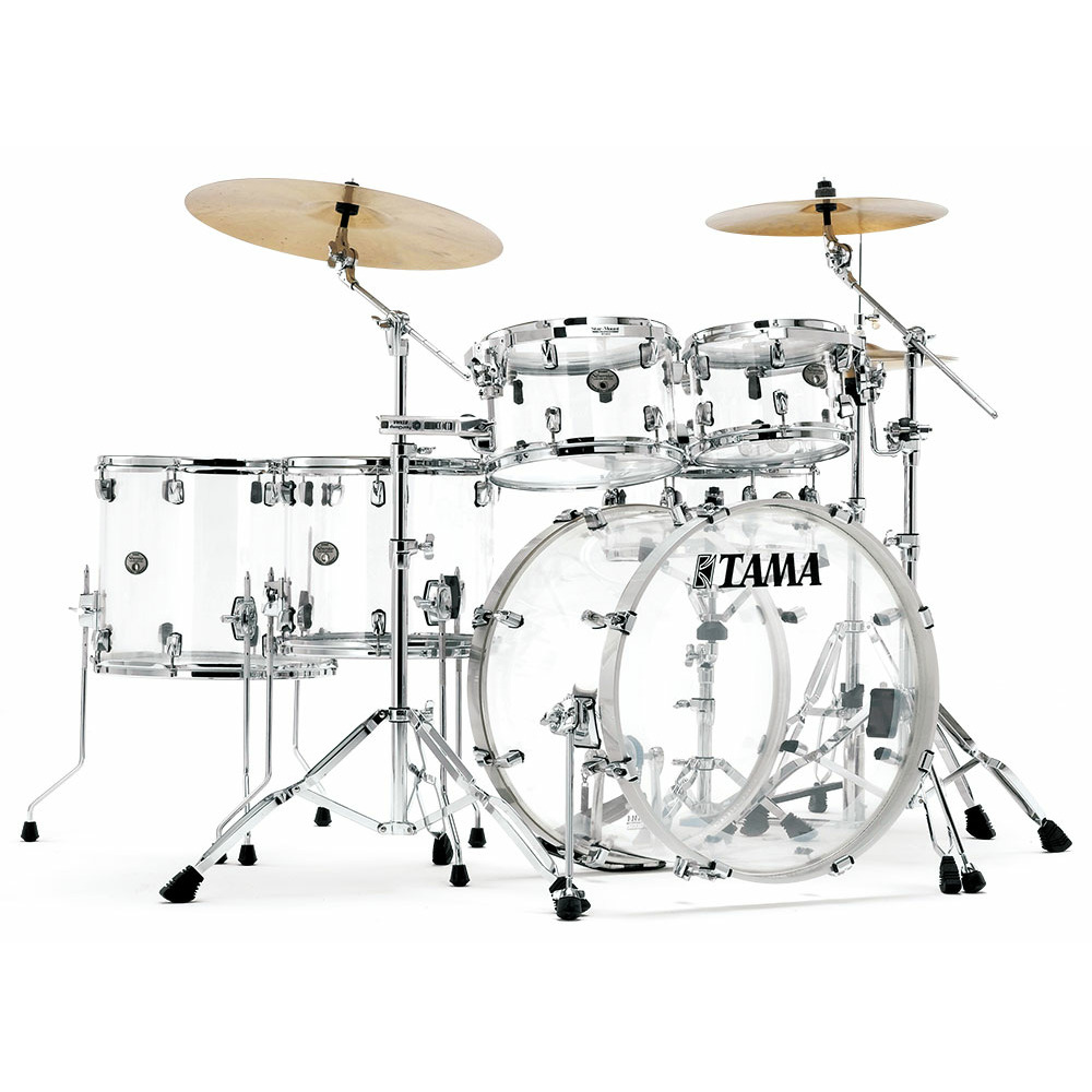 Бесшовные корпуса малого барабана и всех томов изготовлены из 5 мм акрила, а бас-барабан имеет 7 мм акриловый корпус