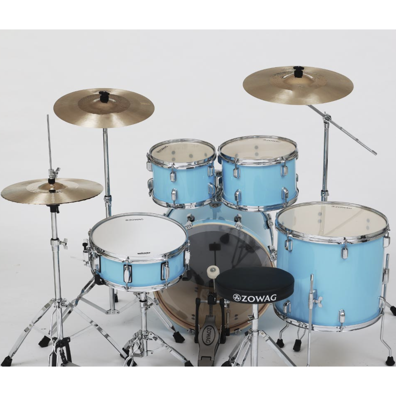 Это студенческая ударная установка начального уровня от бренда Zowag. Она сочетает качество материалов и фурнитуру, обладает тёплым и полнодиапазонным тембром