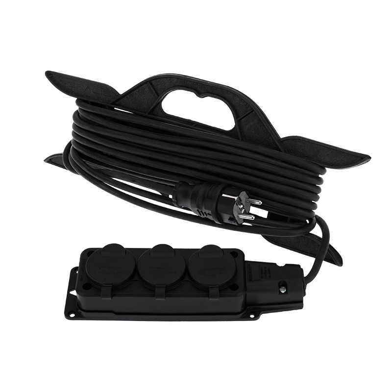 Морозостойкий силовой шнур-удлинитель на рамке REXANT предназначен для подключения электрических приборов и электроинструмента в экстремальных условиях отрицательных температур, когда недостаточно стандартной длины шнура для питания от стационарных розеток. Удлинитель с заземлением REXANT длиной 10 метров предназначен для использования в условиях экстремальных температур в помещениях и вне помещений. Электрическая вилка на проводе европейского стандарта, рамка обеспечивает удобство хранения и перемещения. Основные характеристики: Тип: удлинитель на рамке Количество розеток: 3 Тип розетки: евро Напряжение: 220-250 В Заземление: да Длина провода: 10 м Тип провода: КГтп Сечение провода: 3х1,5 Максимальная нагрузка:(16 А/3,6 кВт) Степень защиты: IP44 Рабочая температура: –40...+50 ºС Цвет: черный