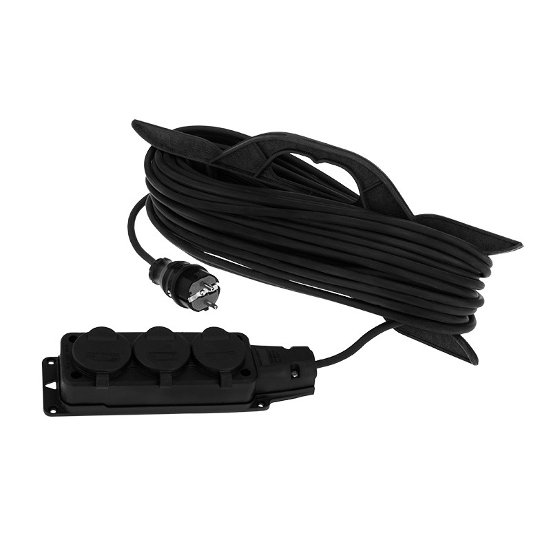 Морозостойкий силовой шнур-удлинитель на рамке REXANT предназначен для подключения электрических приборов и электроинструмента в экстремальных условиях отрицательных температур, когда недостаточно стандартной длины шнура для питания от стационарных розеток. Удлинитель с заземлением REXANT длиной 30 метров предназначен для использования в условиях экстремальных температур в помещениях и вне помещений. Электрическая вилка на проводе европейского стандарта, рамка обеспечивает удобство хранения и перемещения. Основные характеристики: Тип: удлинитель на рамке Количество розеток: 3 Тип розетки: евро Напряжение: 220-250 В Заземление: да Длина провода: 30 м Тип провода: КГтп Сечение провода: 3х1,5 Максимальная нагрузка:(16 А/3,6 кВт) Степень защиты: IP44 Рабочая температура: –40...+50 ºС Цвет: черный
