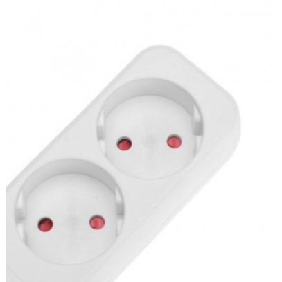 Удлинитель оснащен защитными шторками, которые предназначены для предотвращения случайного попадания пыли, влаги или посторонних предметов в гнезда удлинителя, что способствует долговечности самого устройства и подключенных к нему приборов, а также обеспечивает защиту от поражения электрическим током.