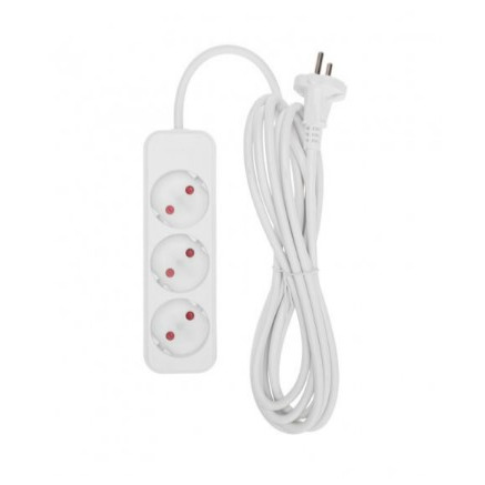 Мощность – 2200Вт. Сечение провода – 2х1,0мм². Тип вилки – прямая. Цвет удлинителя – белый.