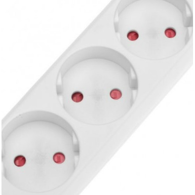 Удлинитель оснащен защитными шторками, которые предназначены для предотвращения случайного попадания пыли, влаги или посторонних предметов в гнезда удлинителя, что способствует долговечности самого устройства и подключенных к нему приборов, а также обеспечивает защиту от поражения электрическим током.